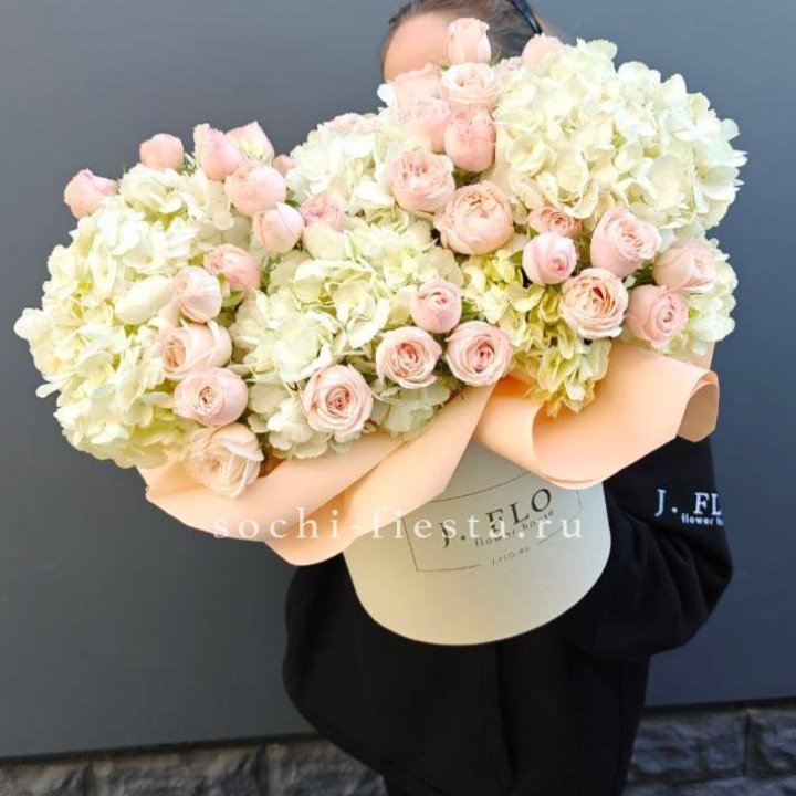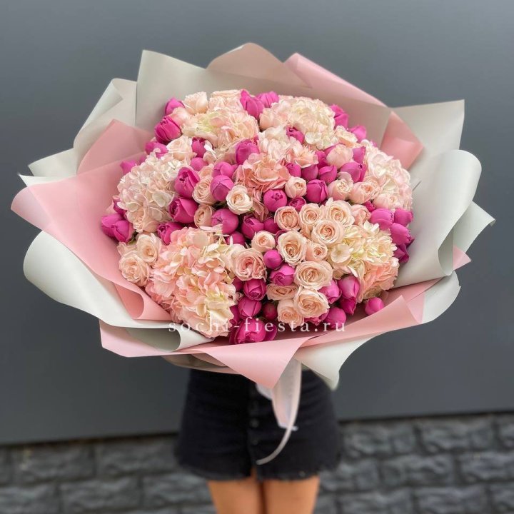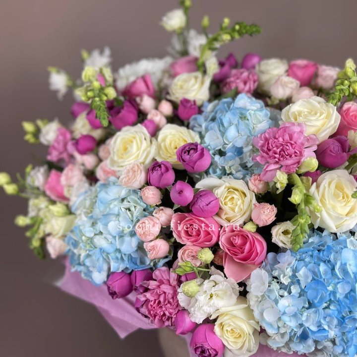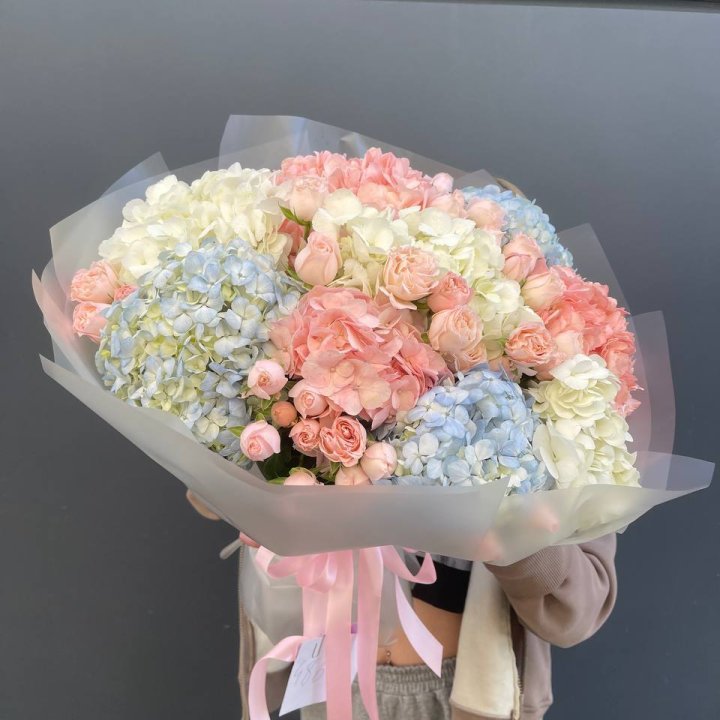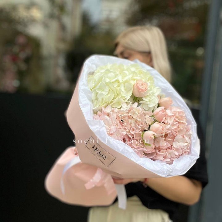 Букет кустовые розы и гортензия