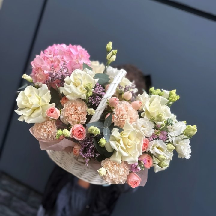 Корзина кустовых пионовидных роз