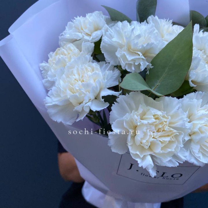 Букет белых диантусов с эвкалиптом