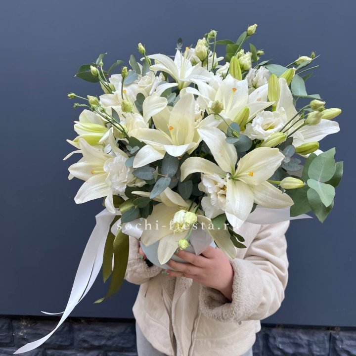 Бокс лилий и эустомы