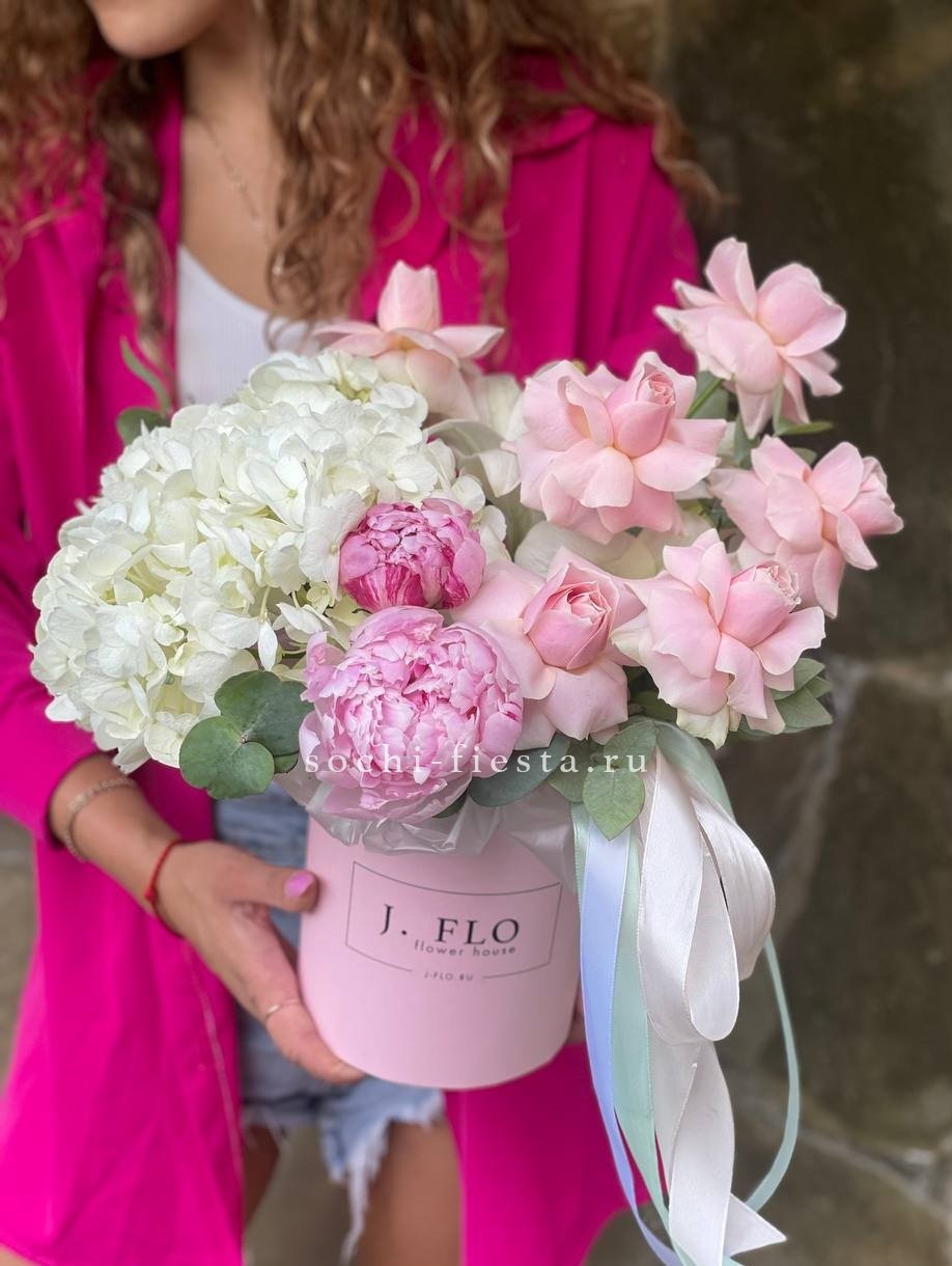 Букет белых гортензий и пионовидных роз