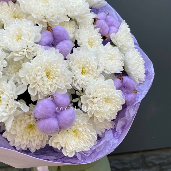 Букет хризантем и хлопка