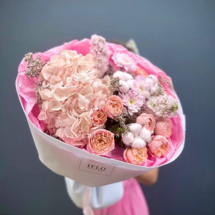 Букет гортензии и кустовых роз "Абрассо"