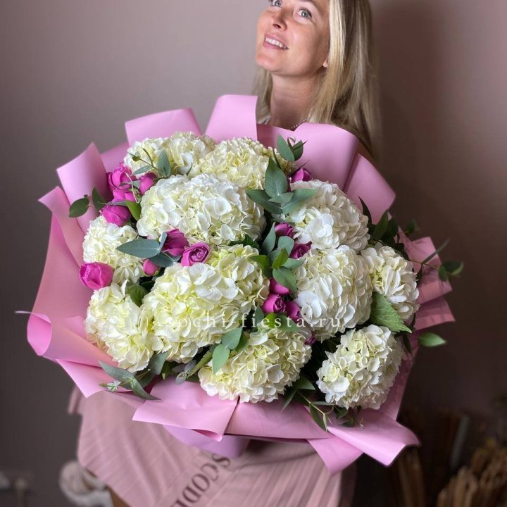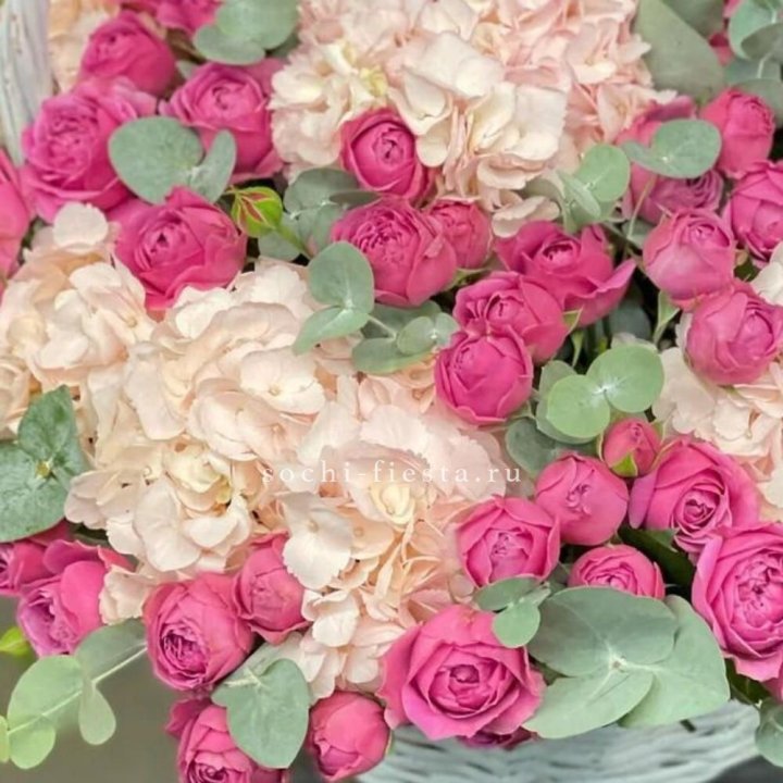 Корзина с гортензией и Мисти Баблс