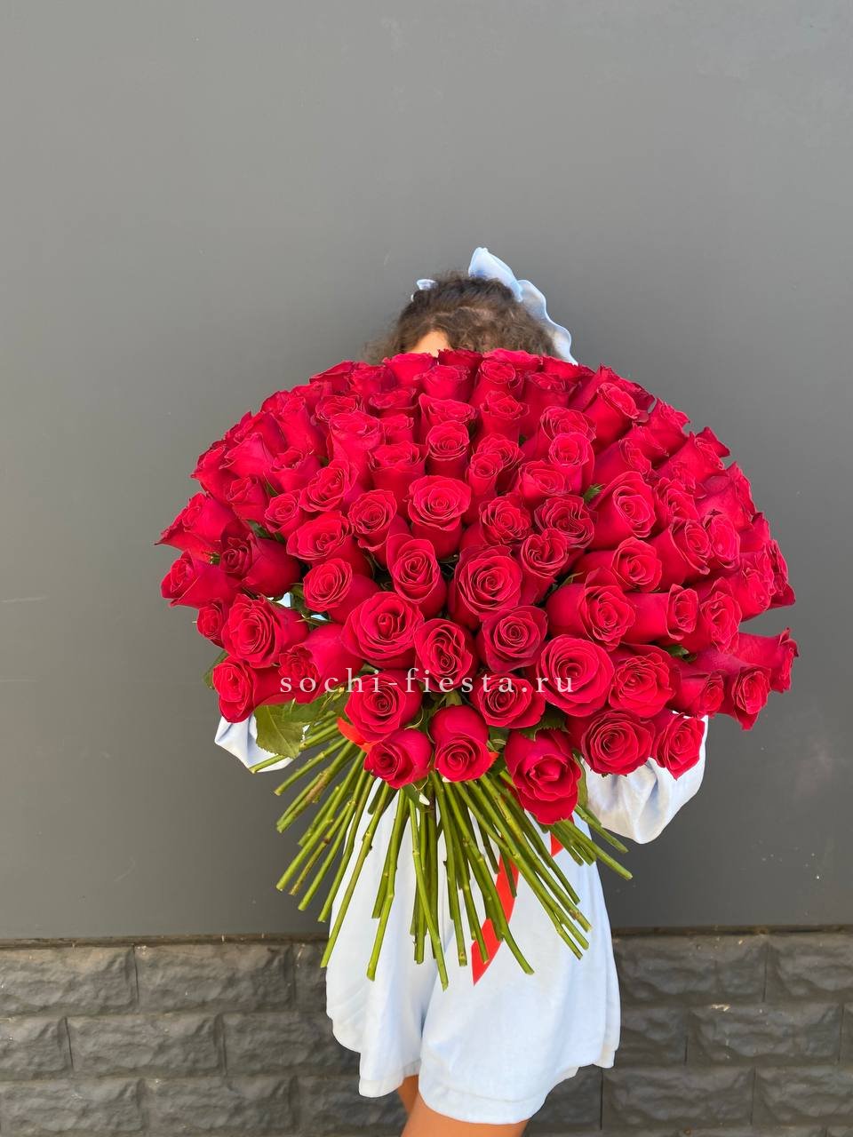 Состав: 101 красная роза, лента