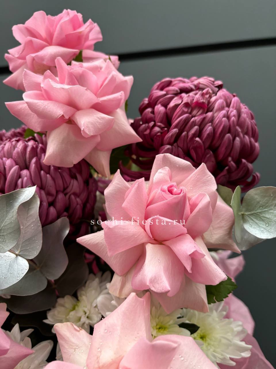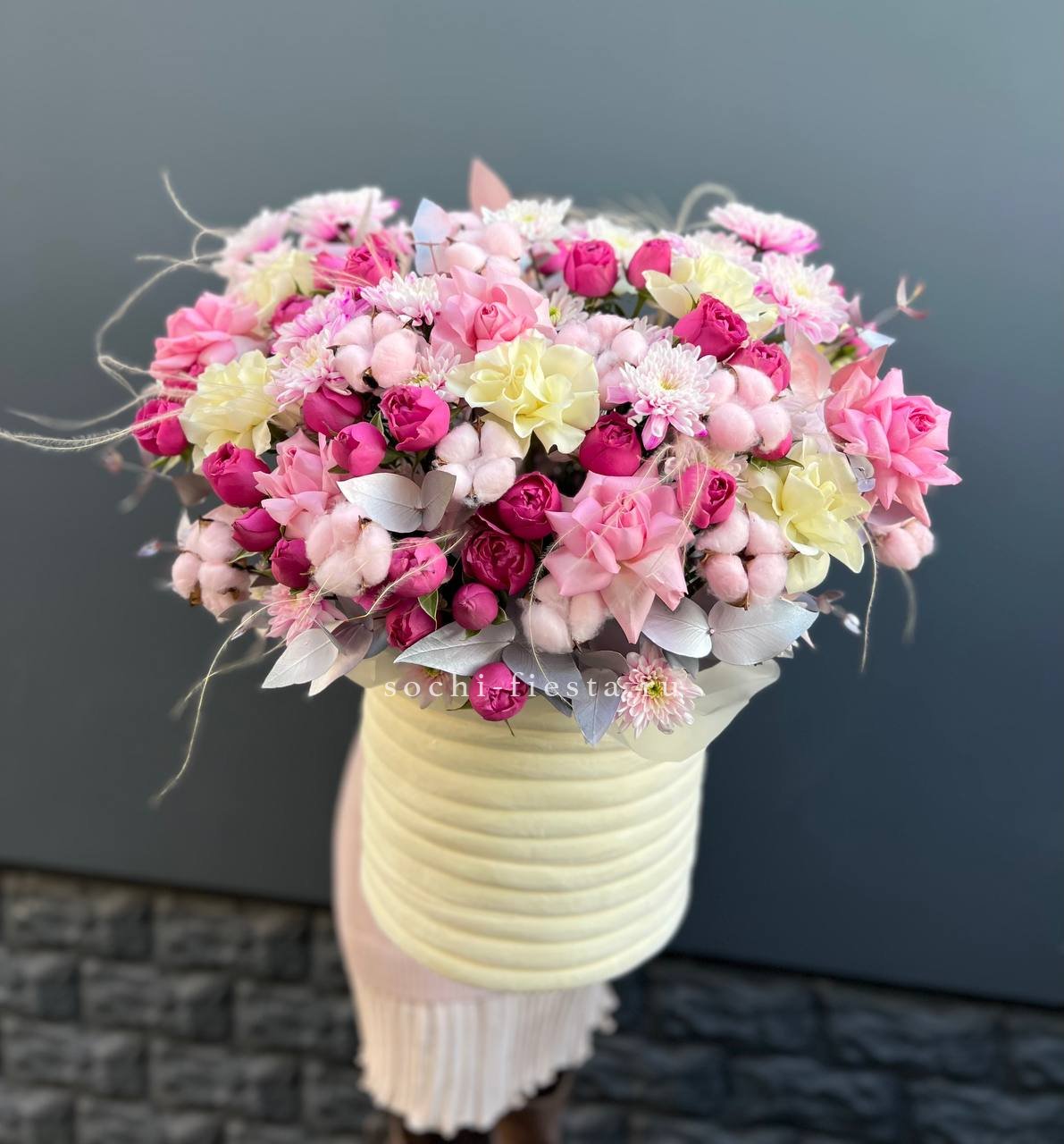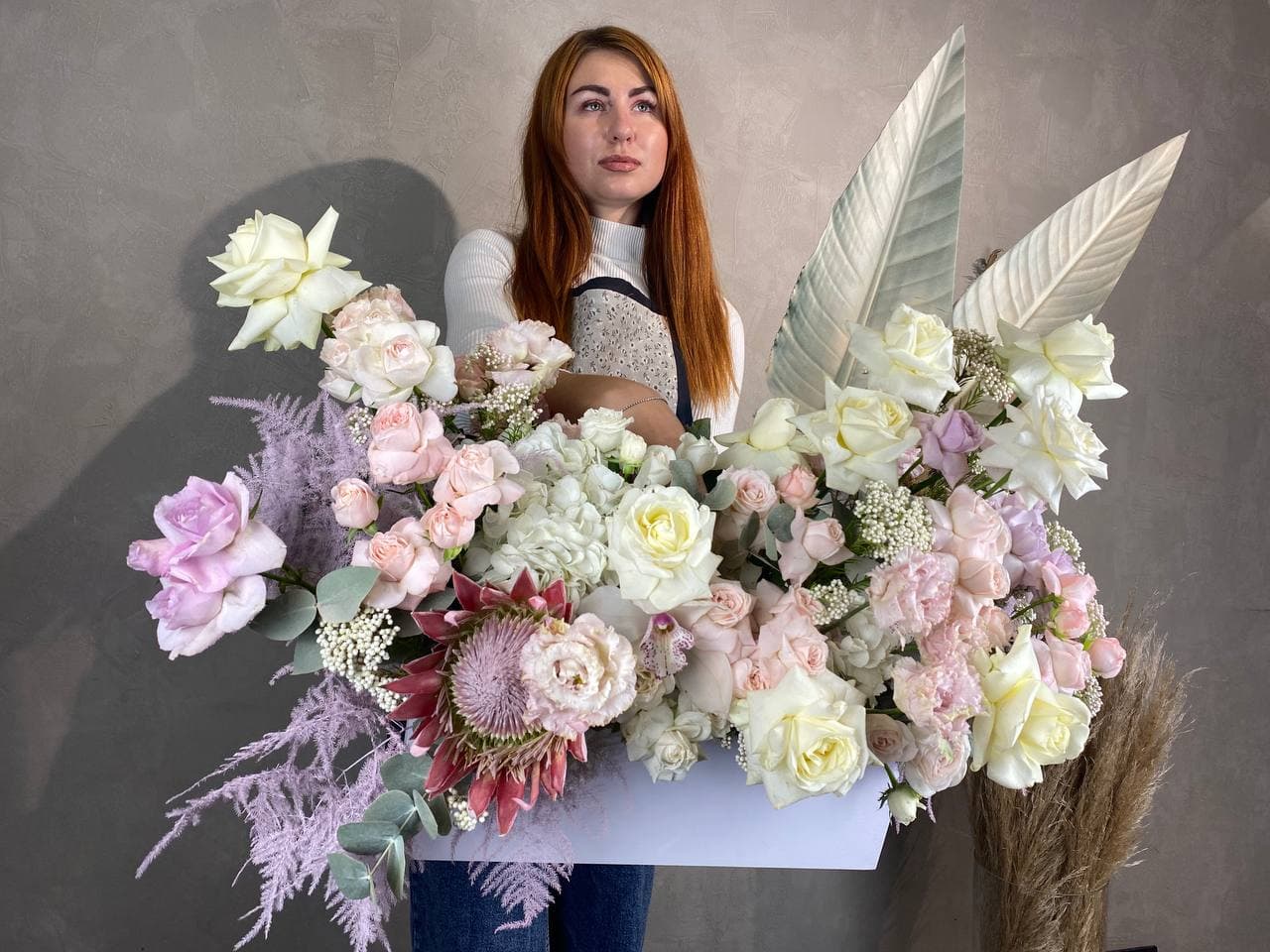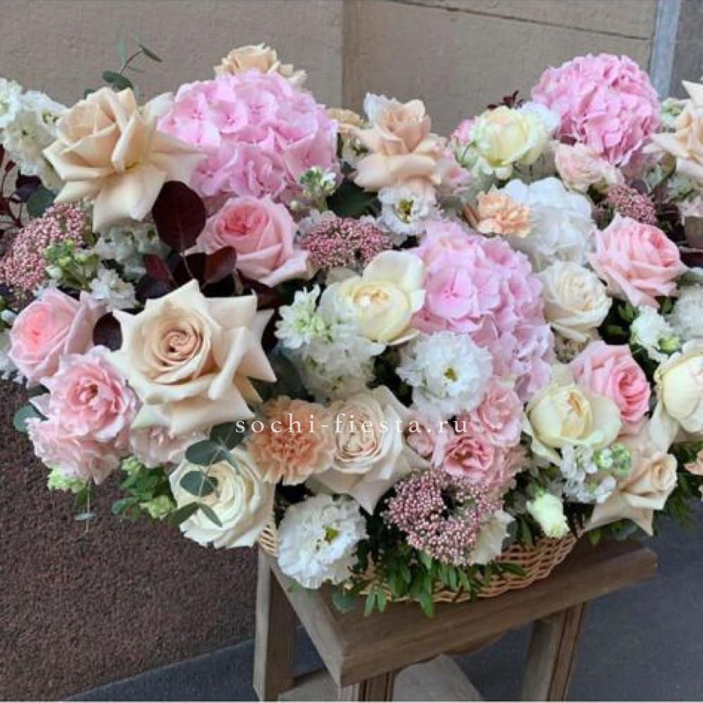 Цветочная корзина из пионов и пионовидных роз "Universe"