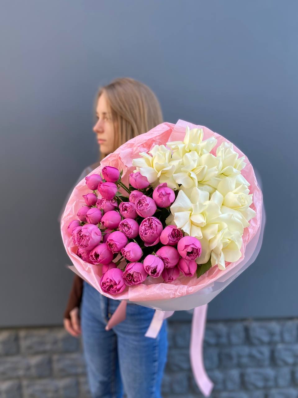 Мы работаем только со свежими цветами — букеты радуют от 7 до 14 дней и дольше при правильном уходе.