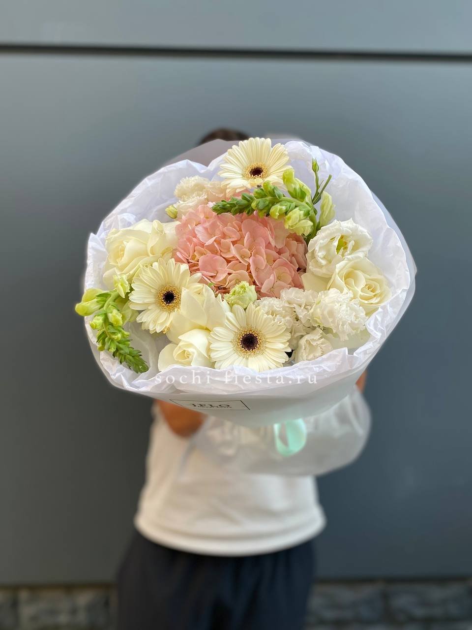 гербера, роза, антиринум(возможна замена), гортензия, эустома, упаковка