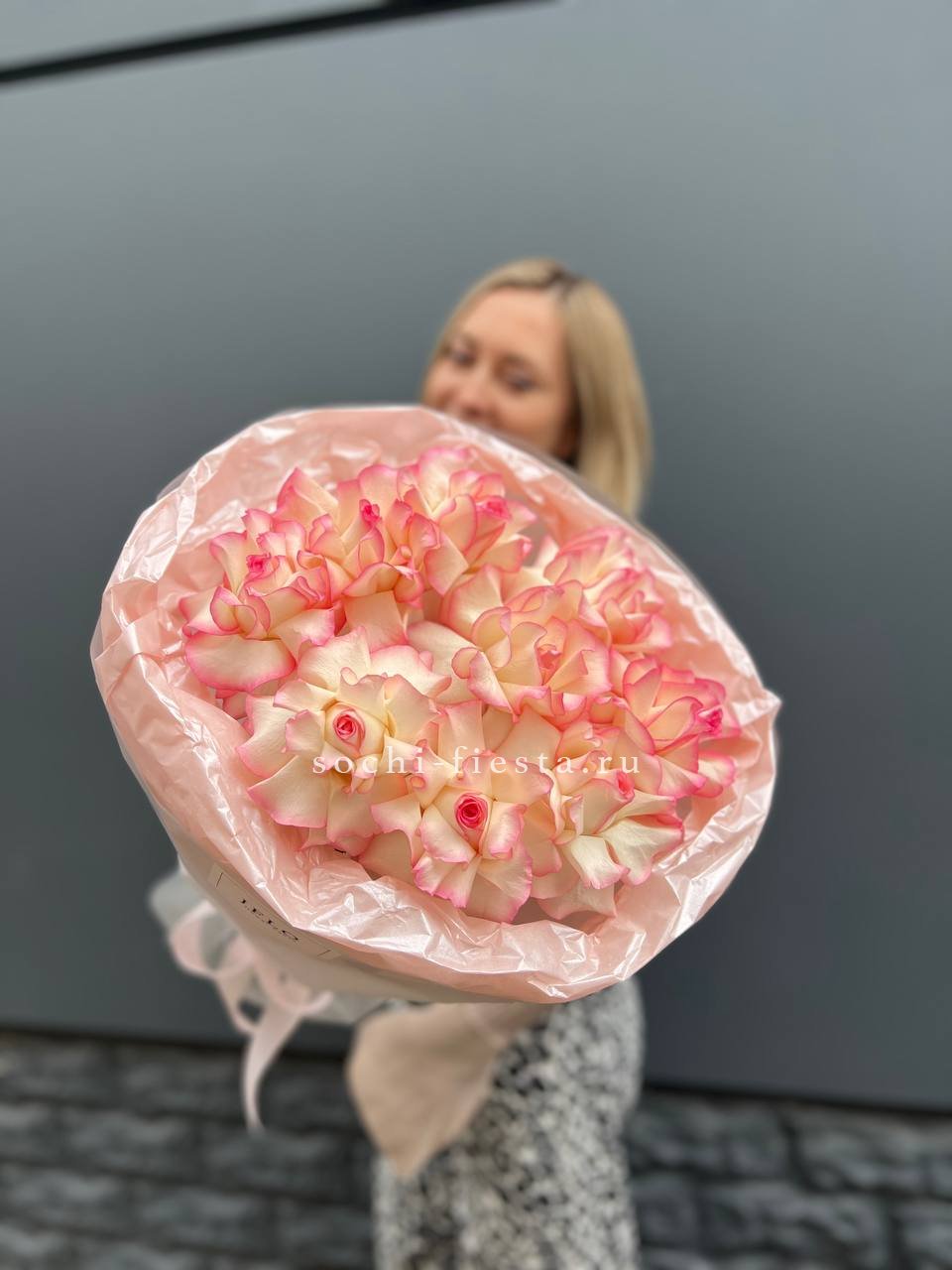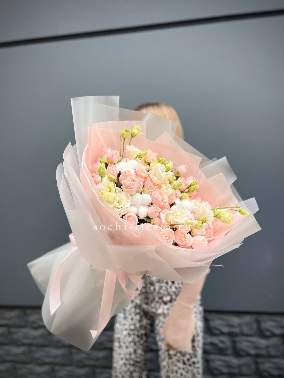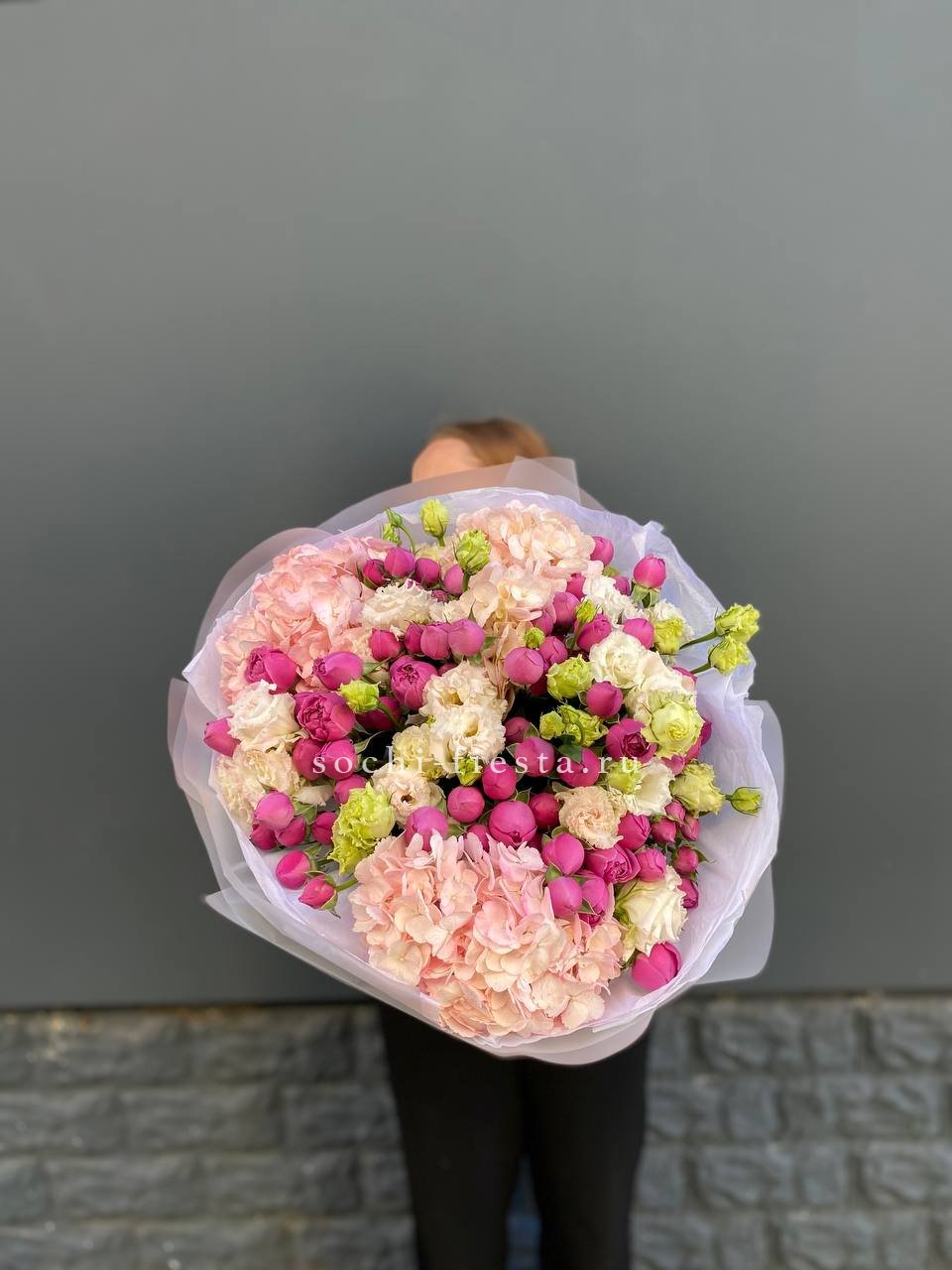 Этот букет — настоящее облако нежности и мечтательности. Сочетание пышных пионовидных роз, деликатных соцветий эустомы и воздушной гортензии в пастельных тонах создает ощущение легкости и свежести. Это идеальный подарок для выражения самых светлых и теплых чувств, который растопит любое сердце и наполнит день волшебством.