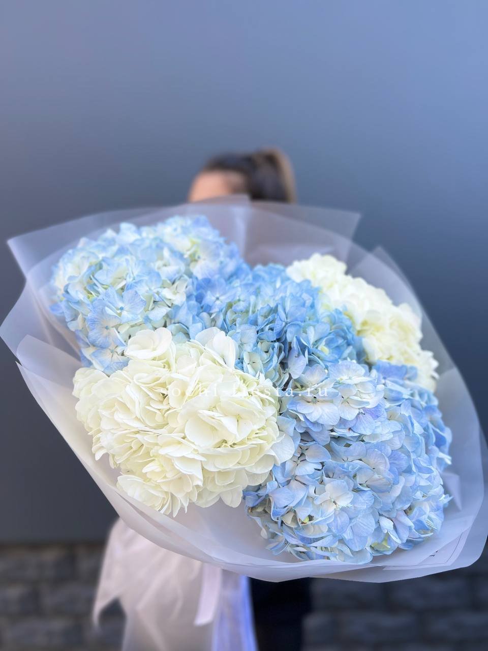 Состав: мисти баблс, гортензия, эустома, оформление.