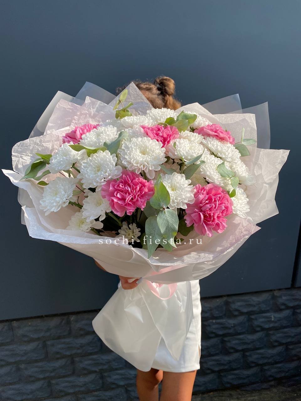 Для заказа товара " Букет хризантем и диантусов "Воздушный"" с доставкой в Москве нажмите в корзину