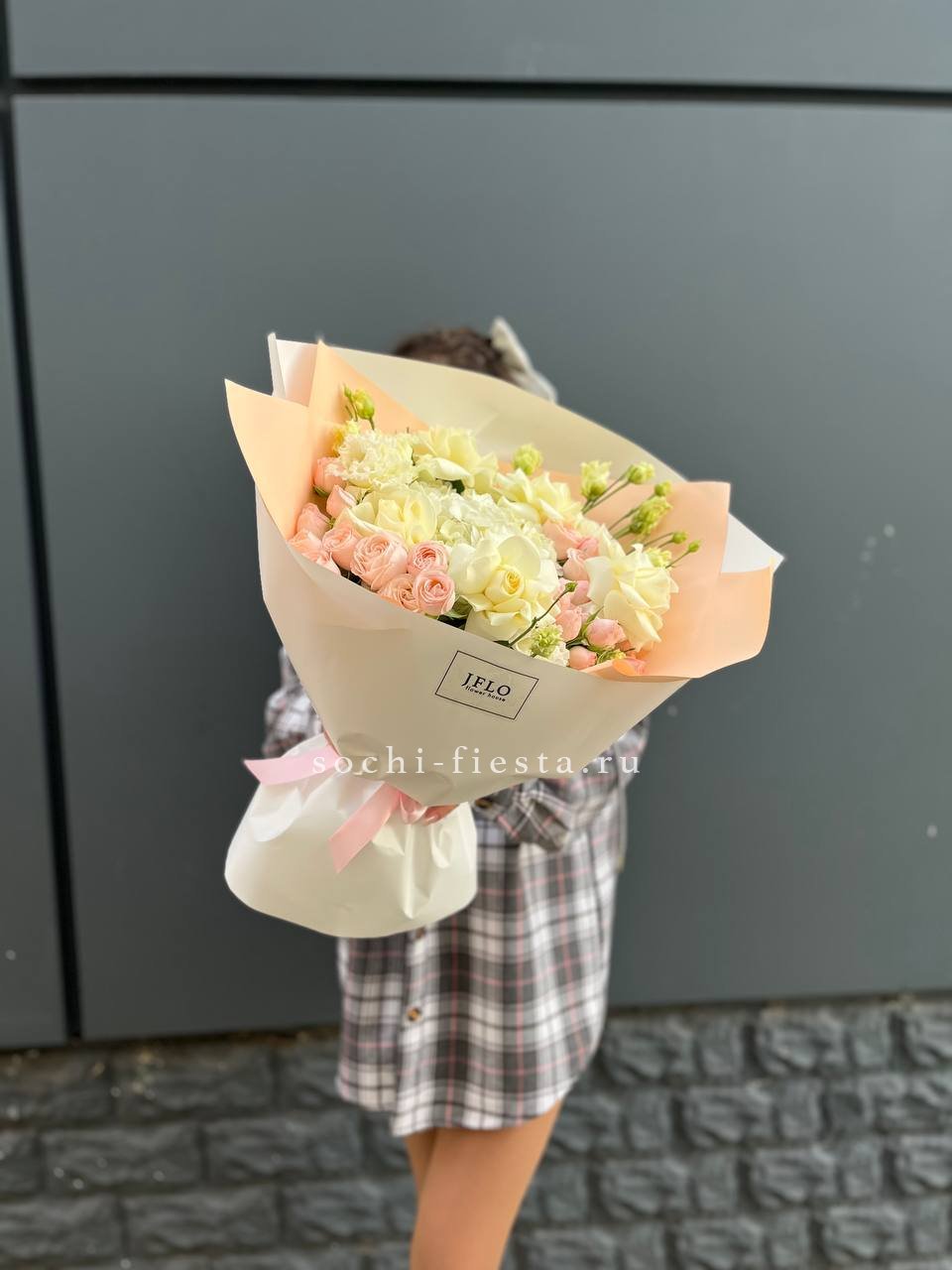 Актуальный и модный букет в трендовой палитре. Сочетание нежно-розовых и белых оттенков с матовой упаковкой отвечает последним тенденциям флористики. Легкость, воздушность и тщательно подобранный состав делают эту композицию идеальным выбором для стильной девушки или современного торжества. Безупречный вкус в каждой детали.