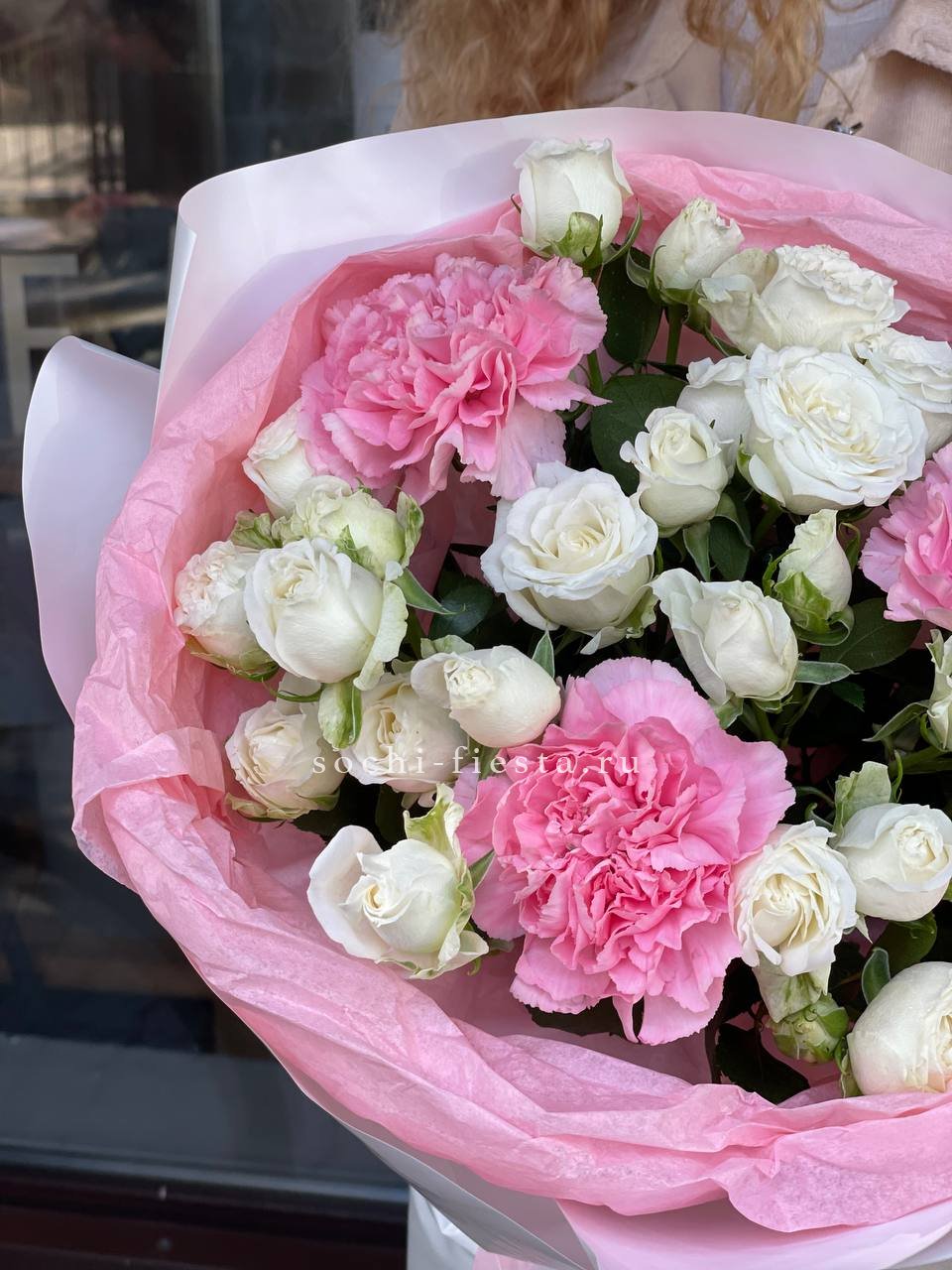Букет розы с диантусами Blush
