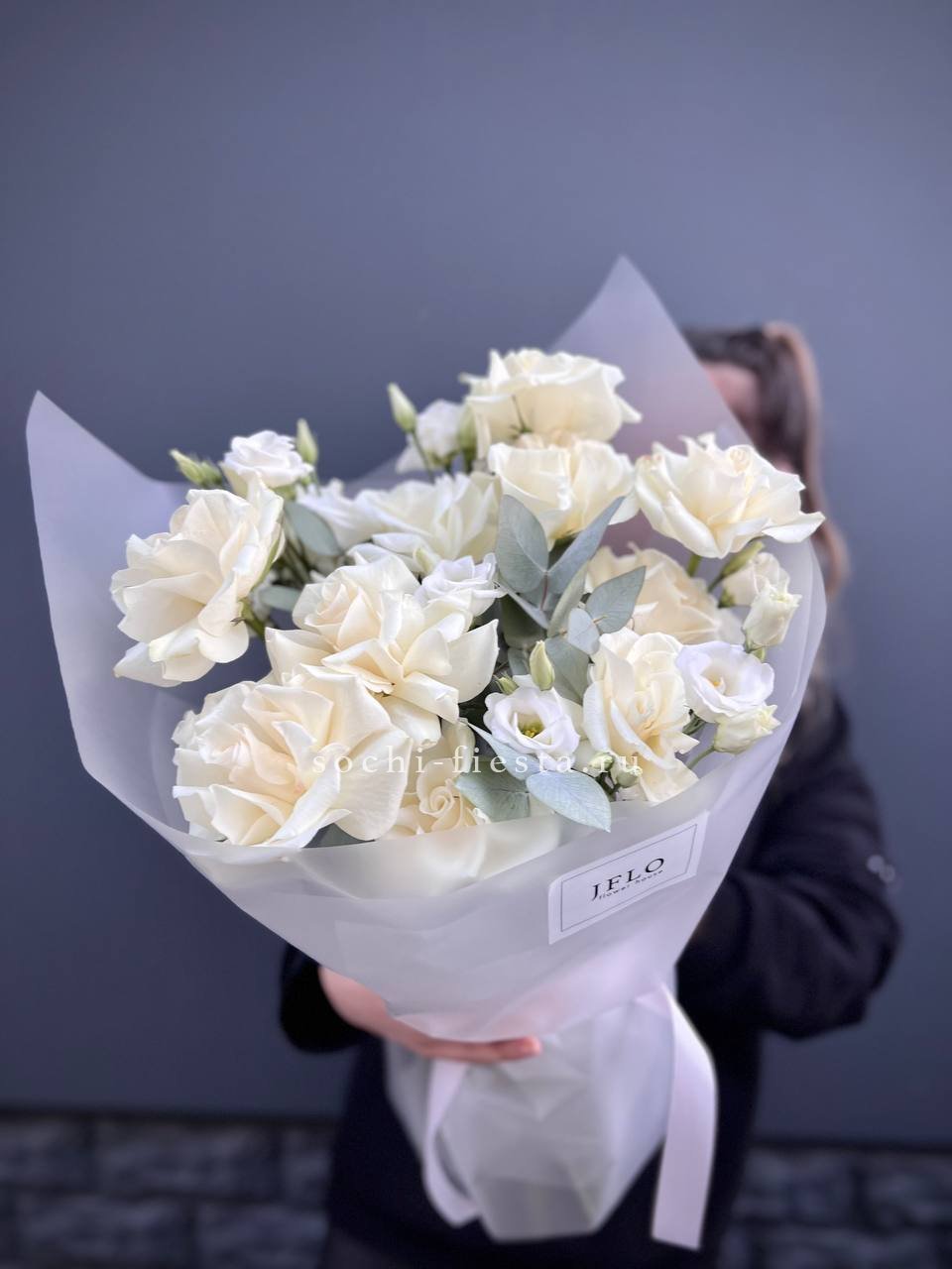 Состав: гортензия, бомбастик, роза, эустома, эвкалипт, авторское оформление