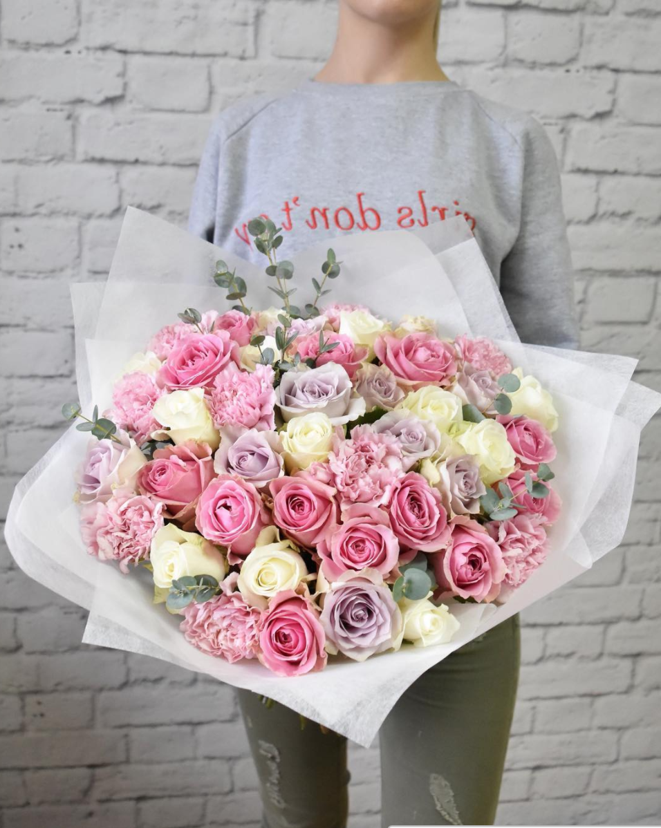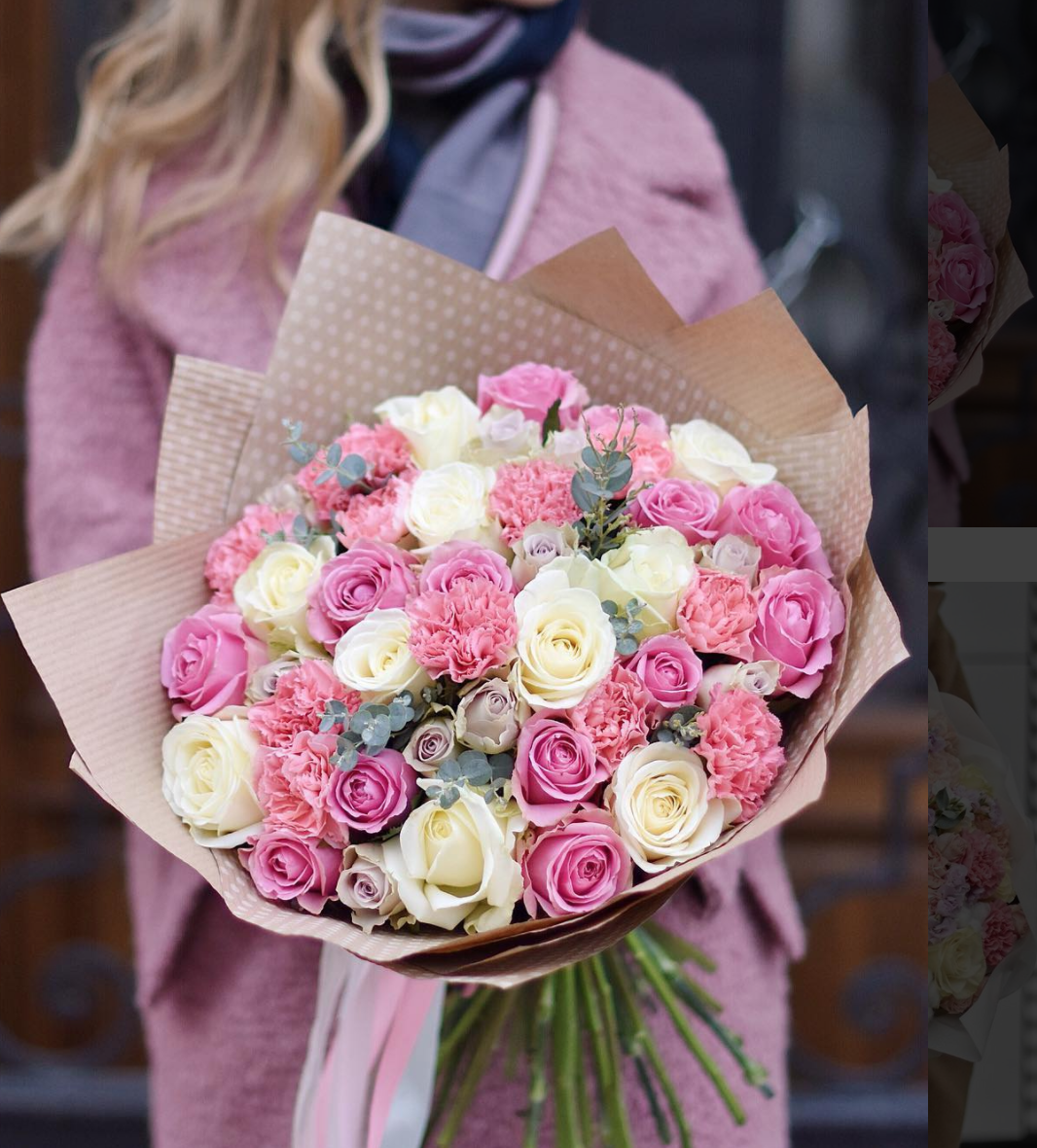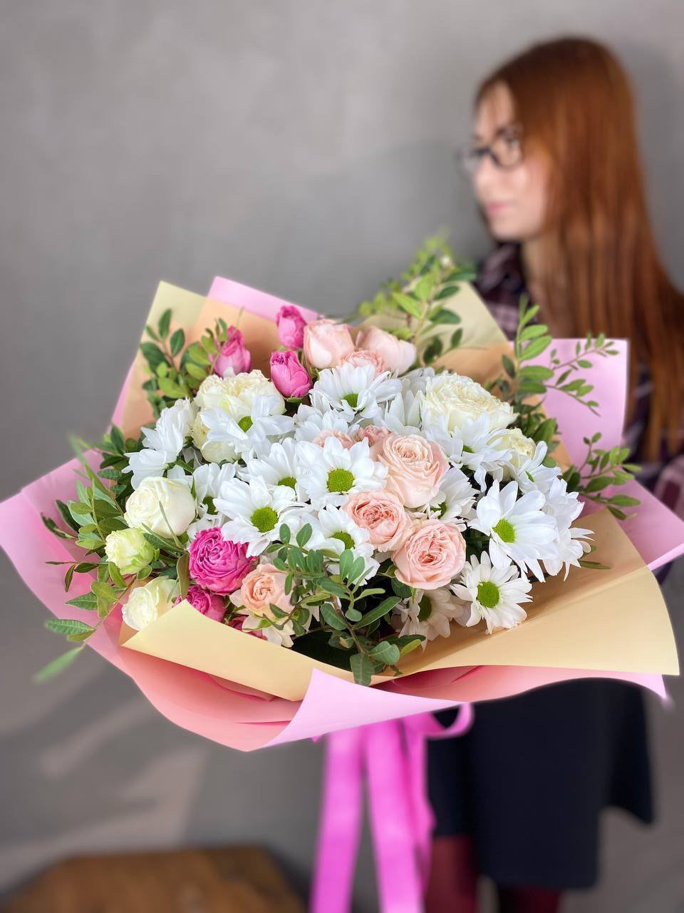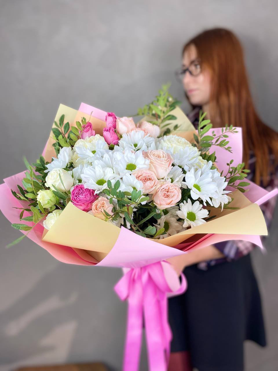 Яркий букет с элементами нового года. Стойкий, объёмный, зимний-это ваш выбор!