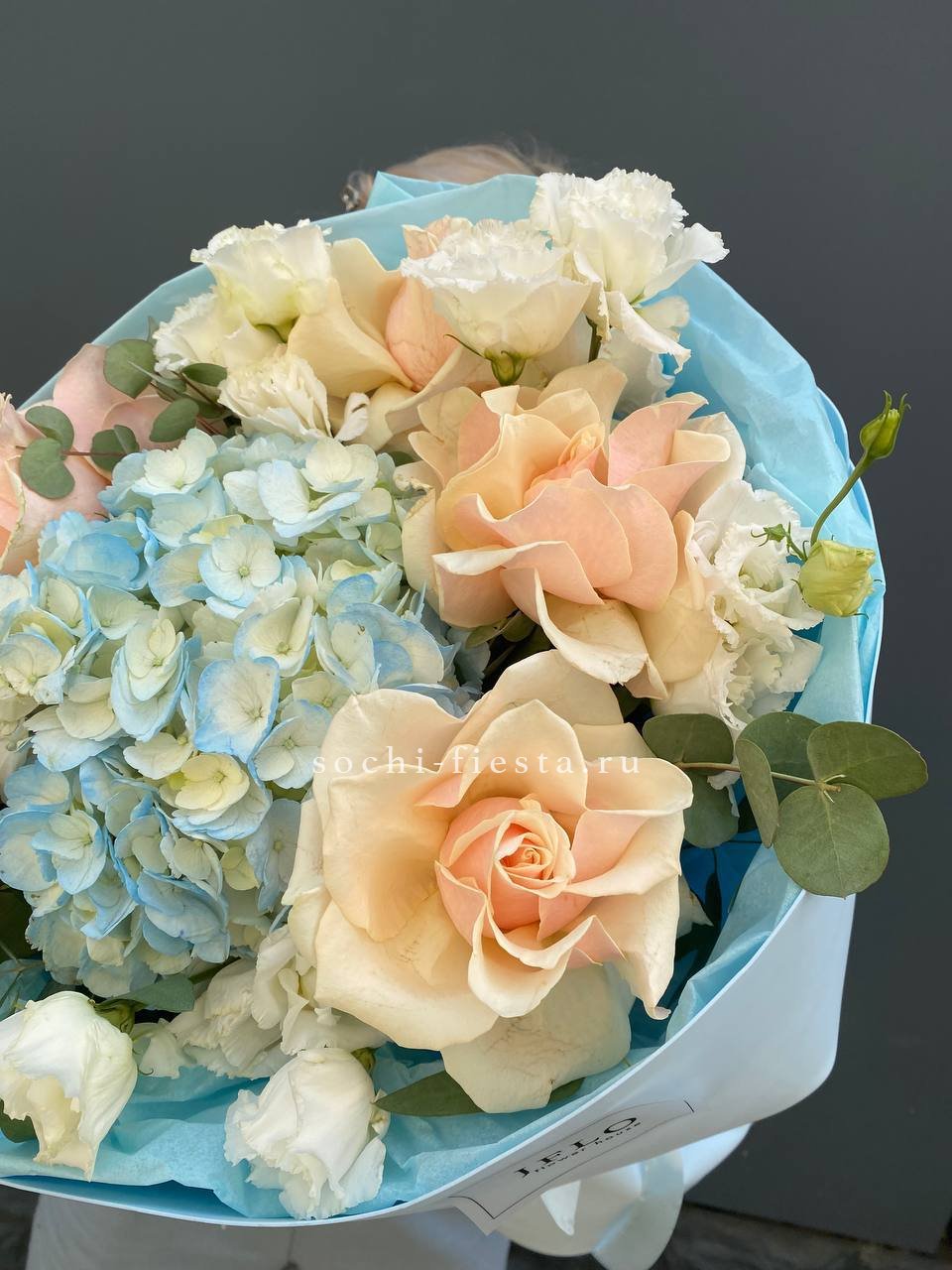 Состав: кремовые розы, гортензии, эустома