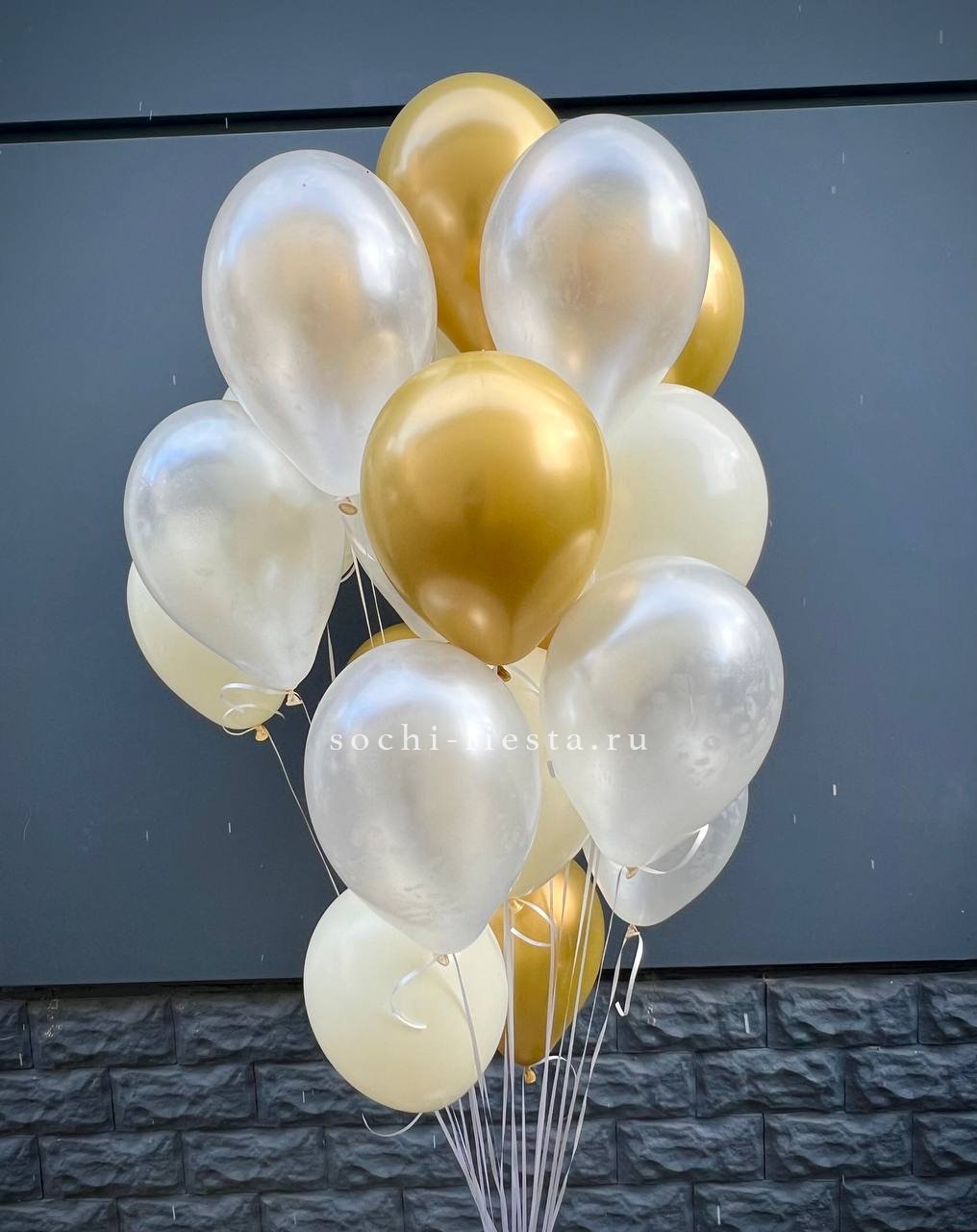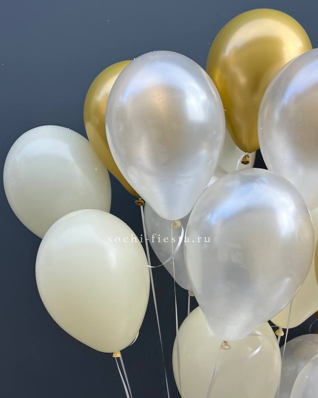 Облако шаров из белого и золотого оттенков