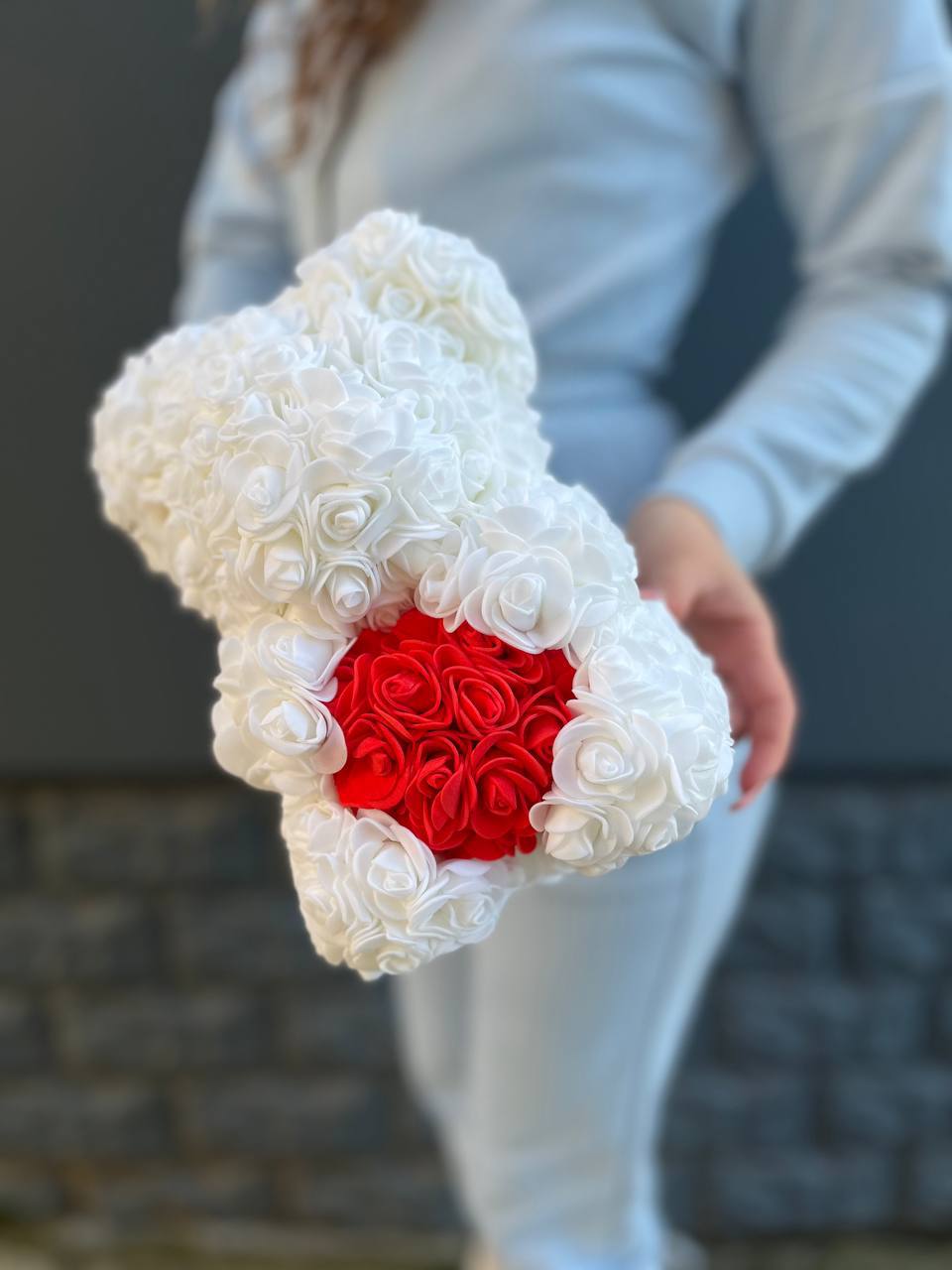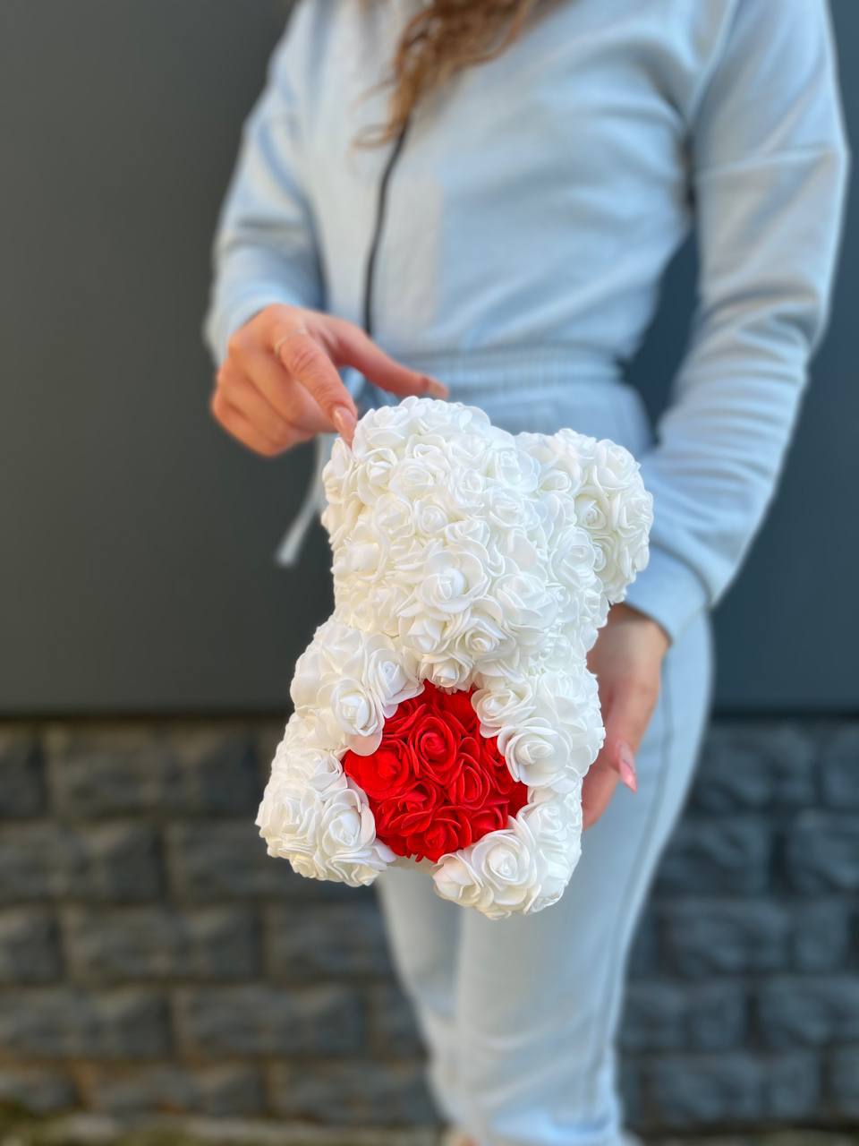 Медведь из PE материала фоамирана (цвет белый с красной сердцевиной)