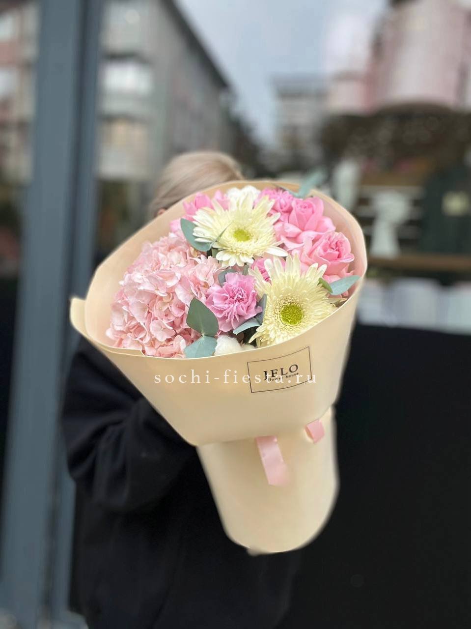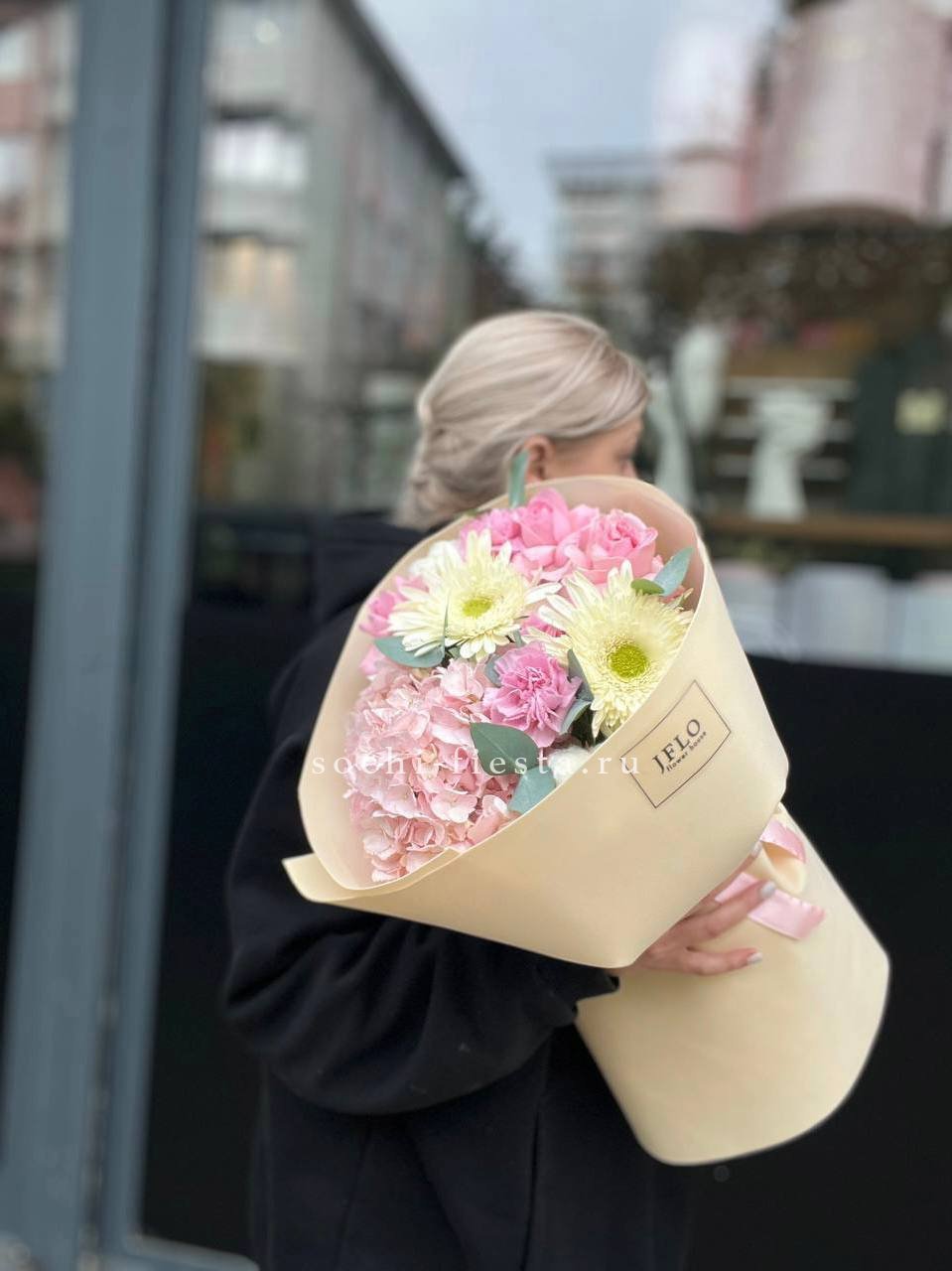 Настоящий взрыв цвета и позитива! Эта пышная и многосоставная композиция в стильной коробке притягивает взгляды богатством форм и оттенков — от нежно-розового до насыщенного белого. Это не просто цветы, а целая история о радости, празднике и восхищении. Подарок, который гарантированно произведет яркое впечатление и останется в памяти надолго.