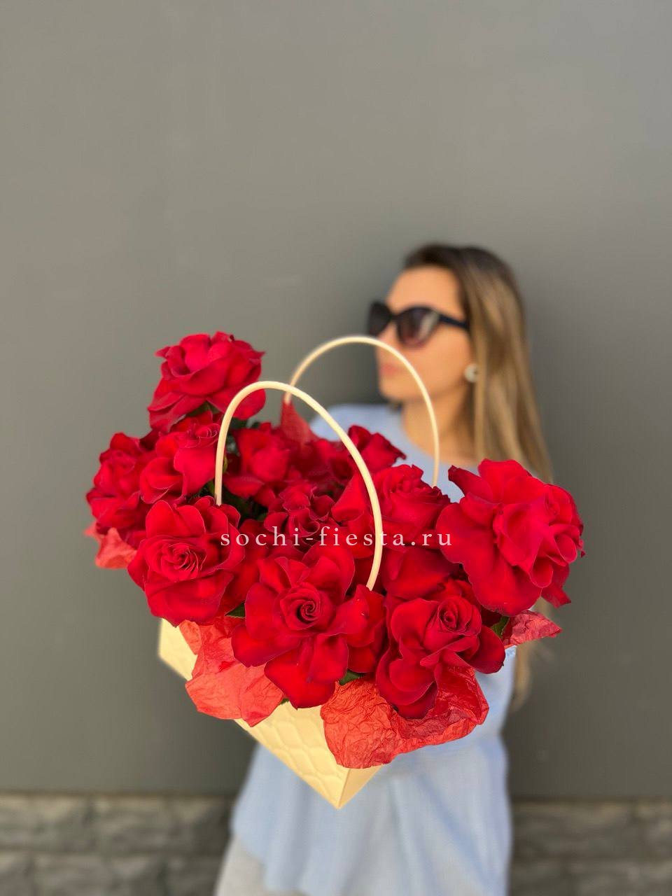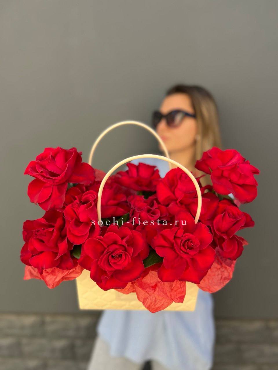 Состав: красные розы в сумочке