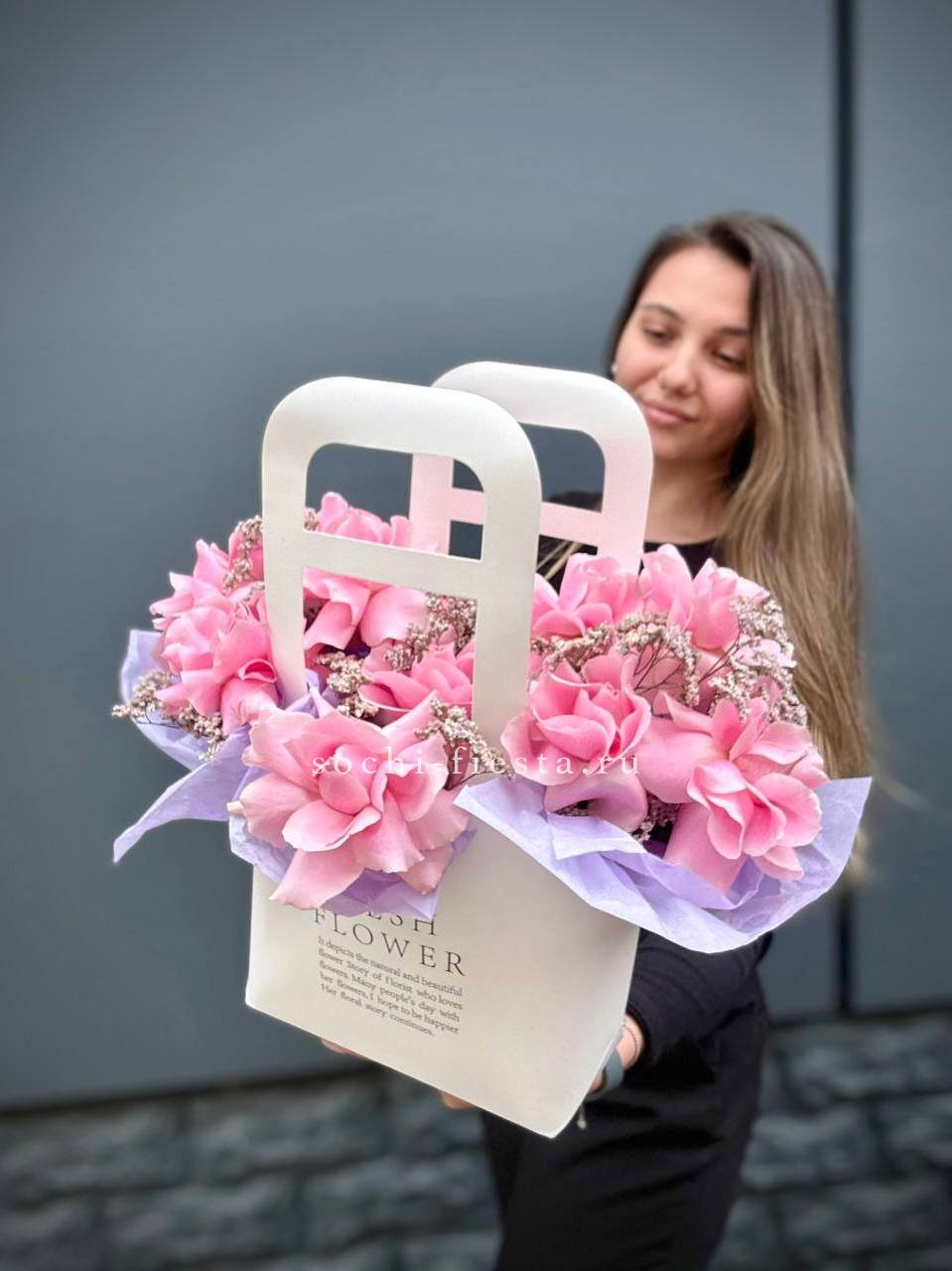 Для заказа товара "Сумочка розовых роз "Plinkil"" с доставкой в Москве нажмите в корзину