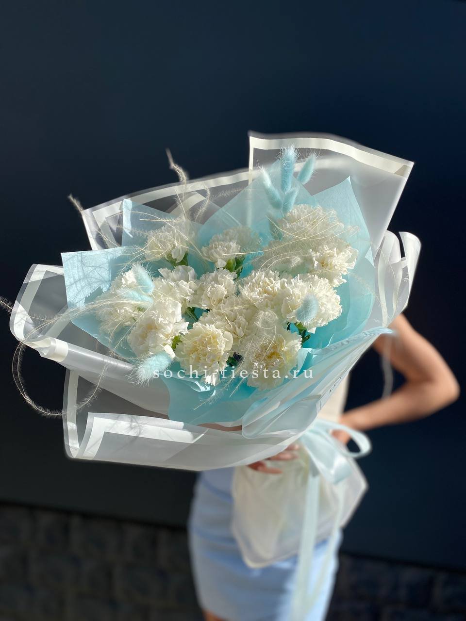 Белые Диантусы с эвкалиптом