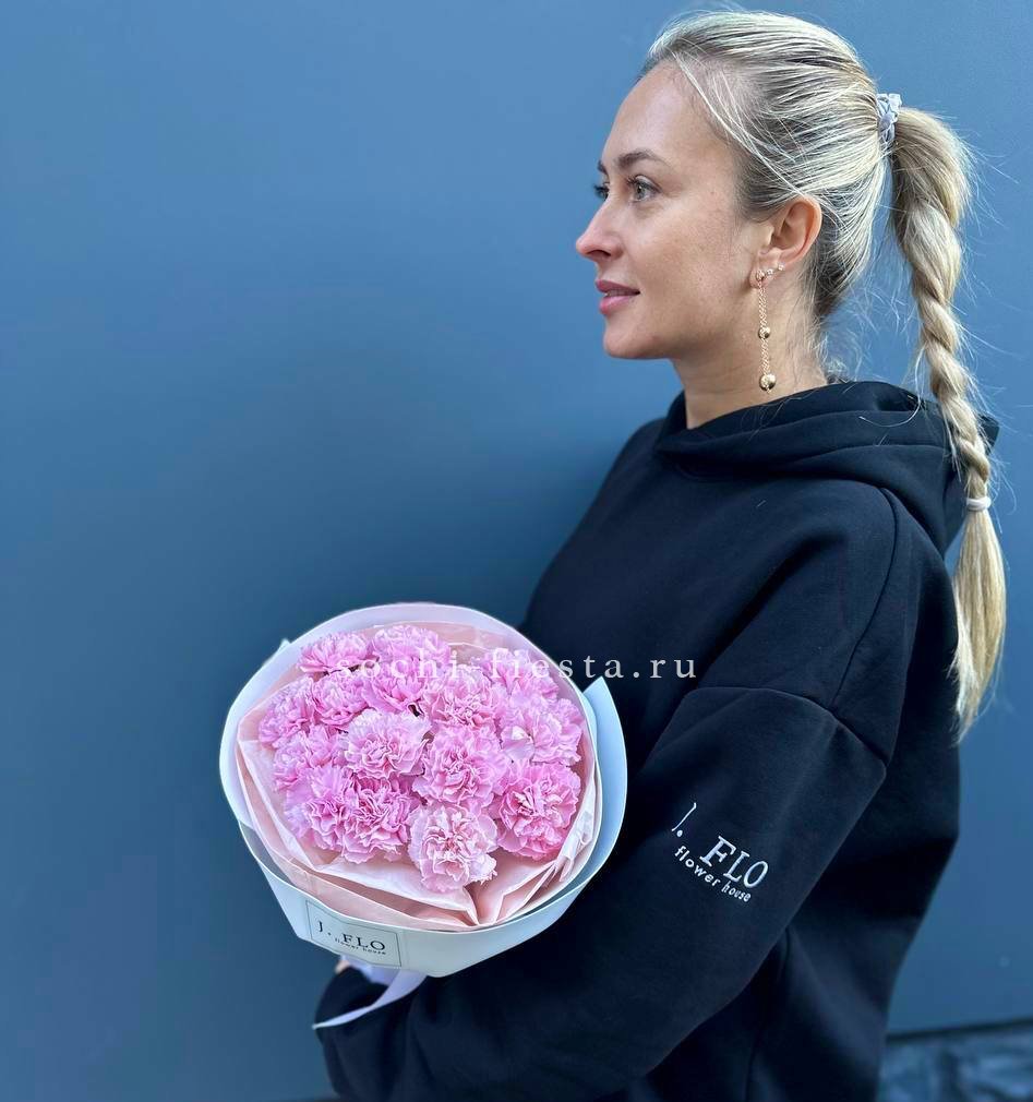 Состав: диантусы 15шт, тишью, упаковка, лента