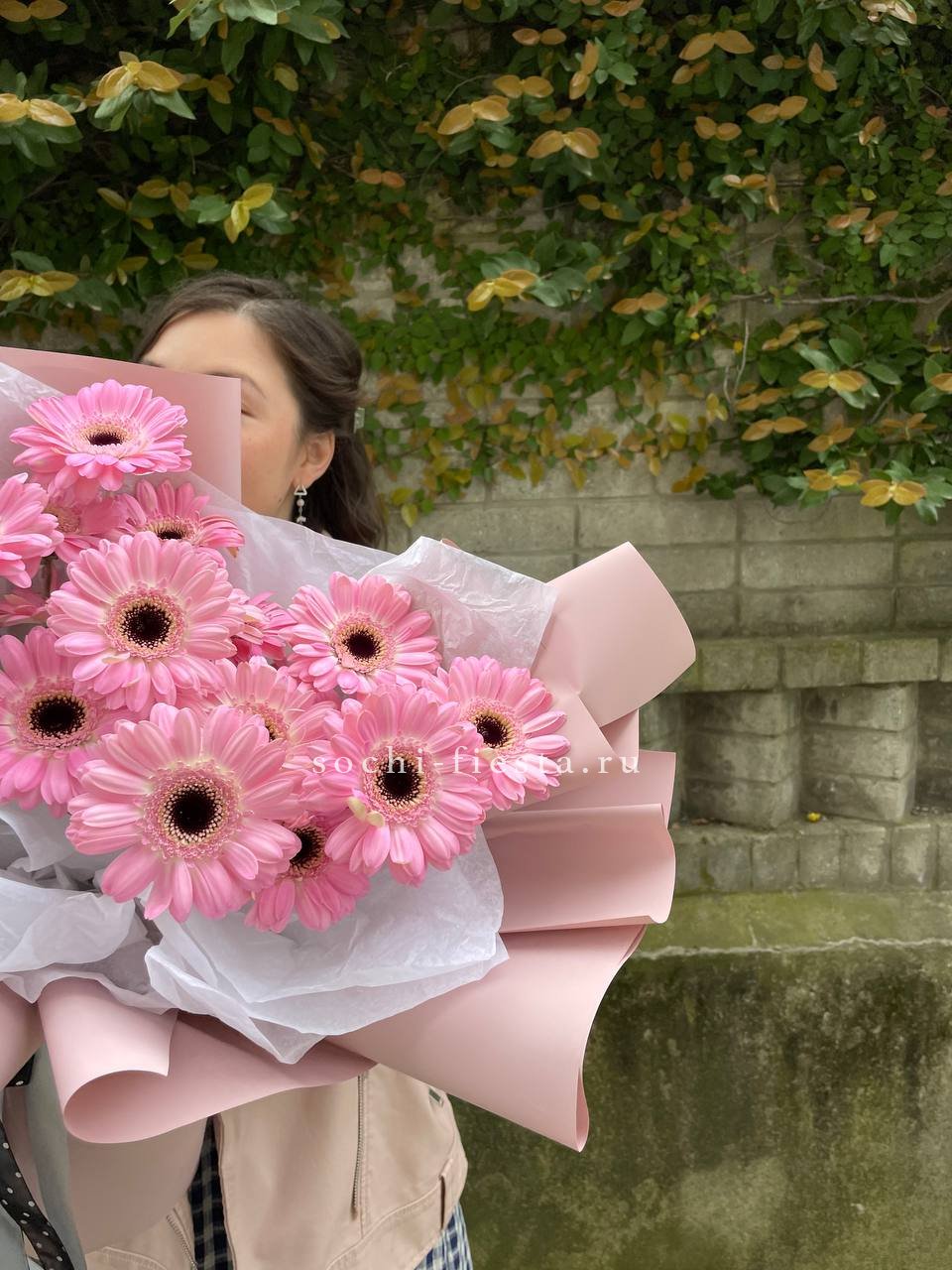 Розовые герберы- 13 шт, оформление.