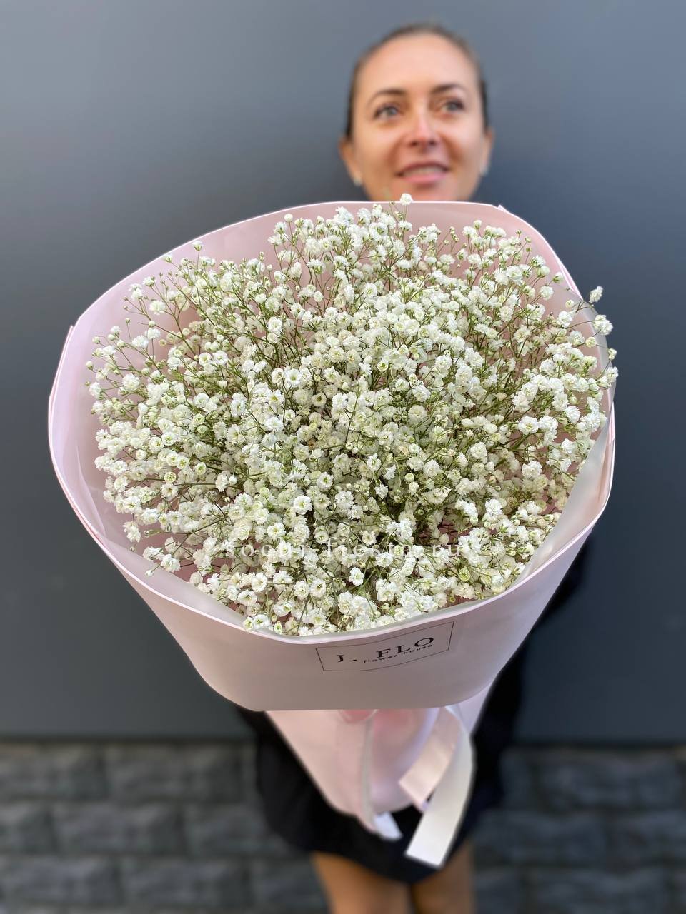 Состав: 11 голландских гипсофил, лента, комбинированная упаковка