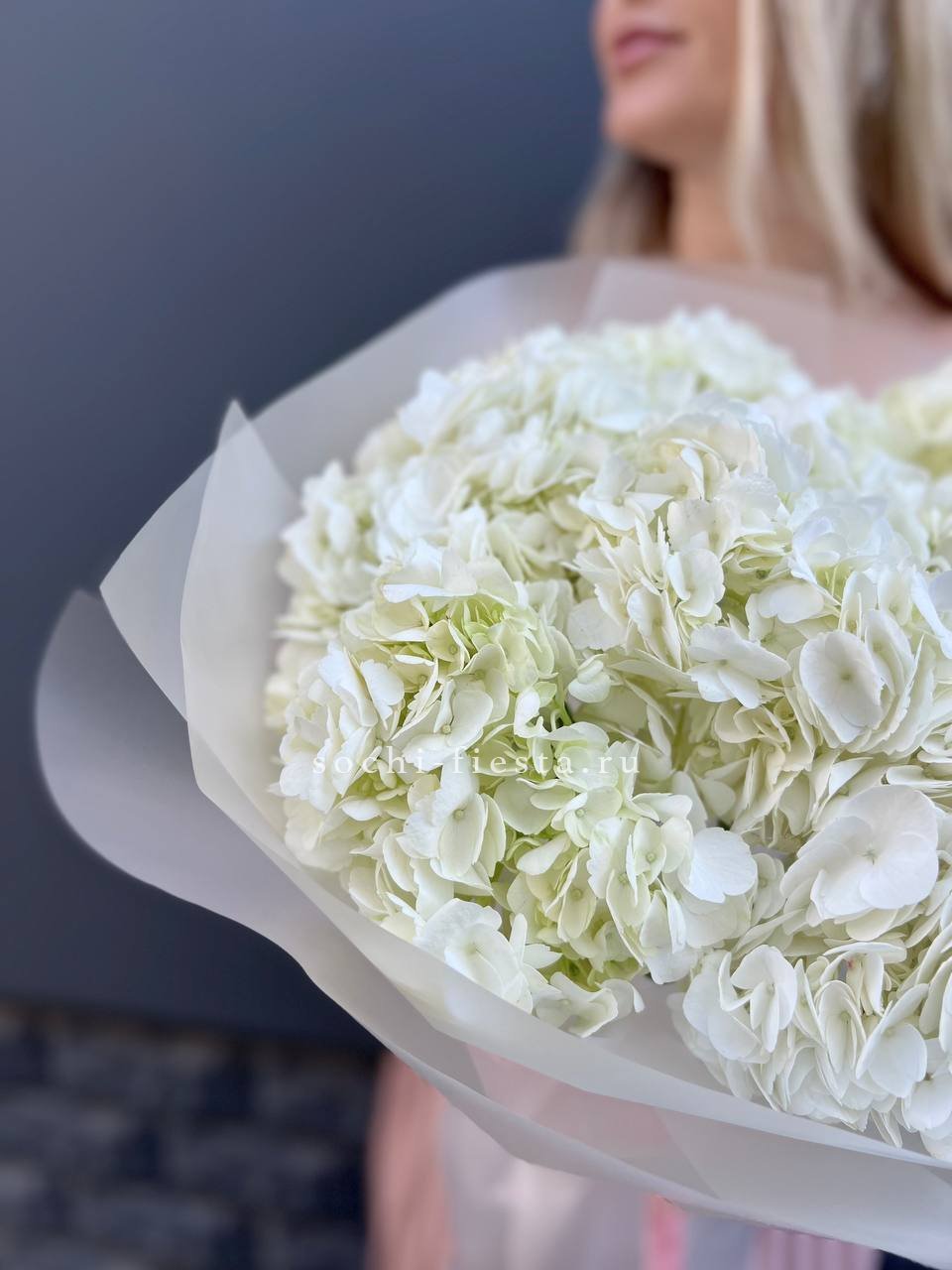 Состав: гортензия - 7 шт., лента, дизайнерская упаковка