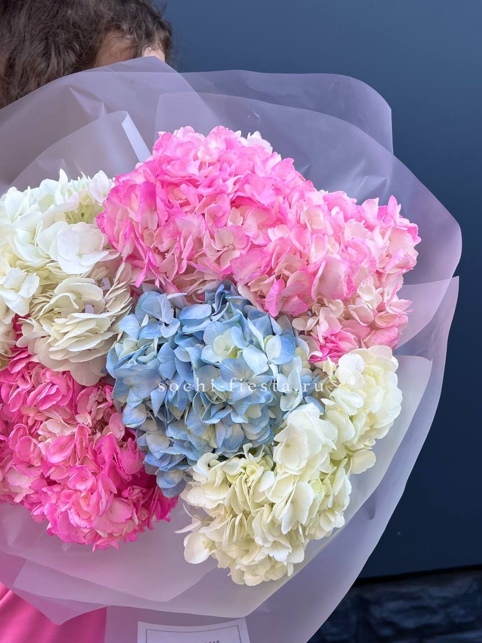 Состав: гортензия - 7 шт., лента, дизайнерская упаковка