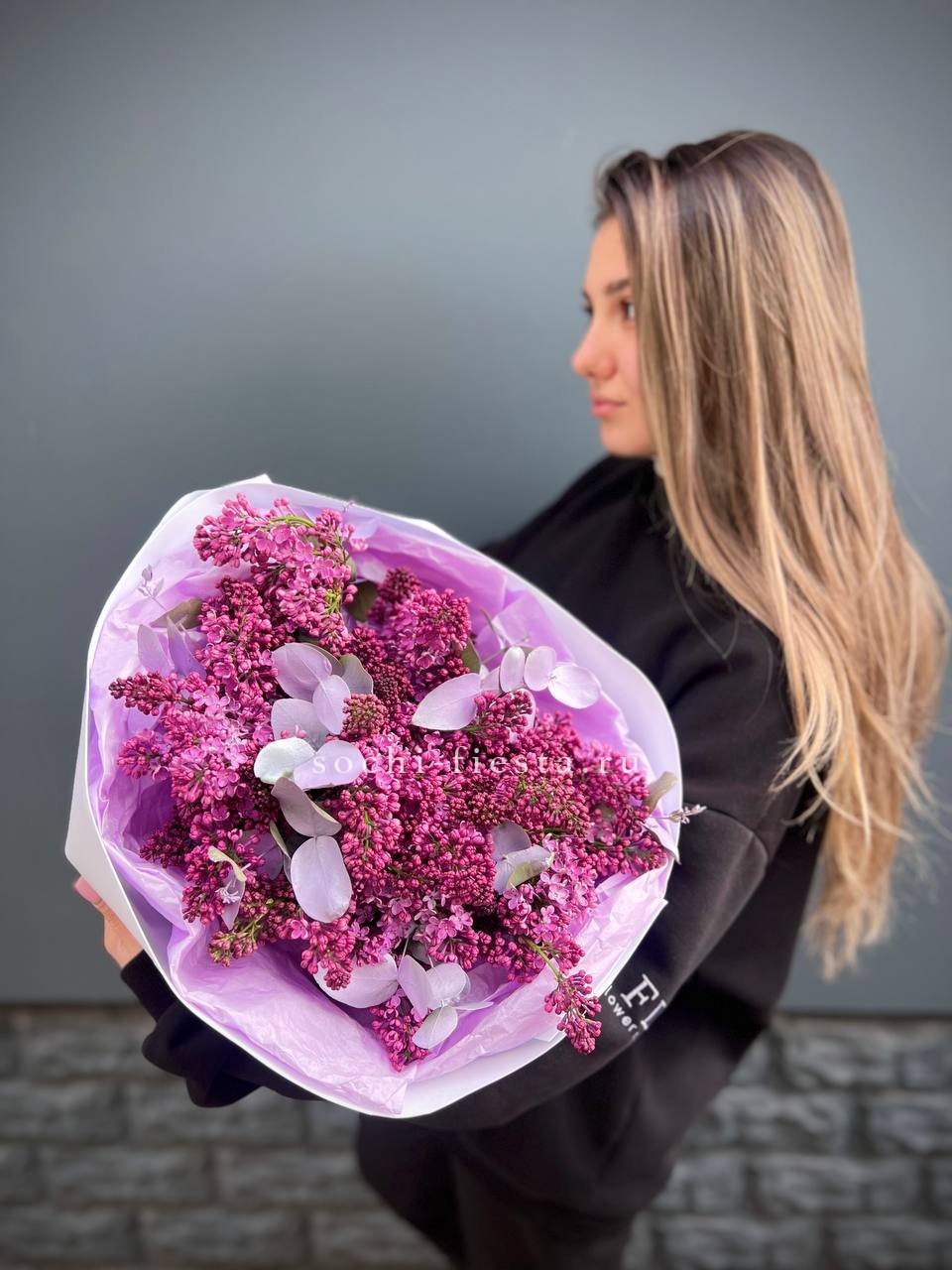 Состав: сирень - 9 веток, дизайнерское оформление, лента