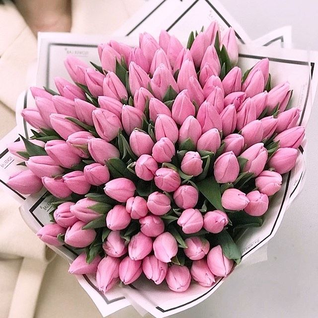 Состав: 35 сиреневых тюльпанов, лента, белая пленка или крафт