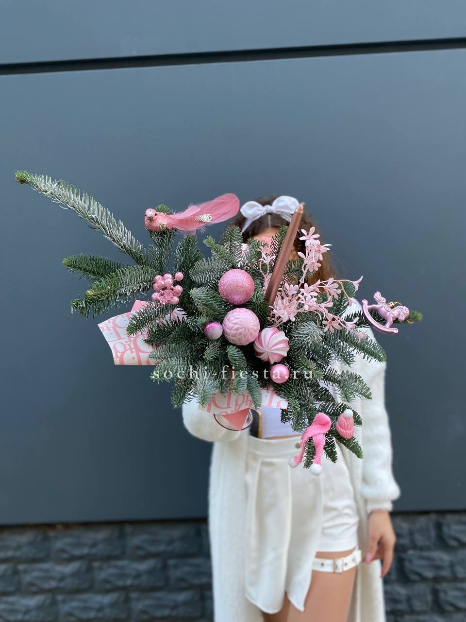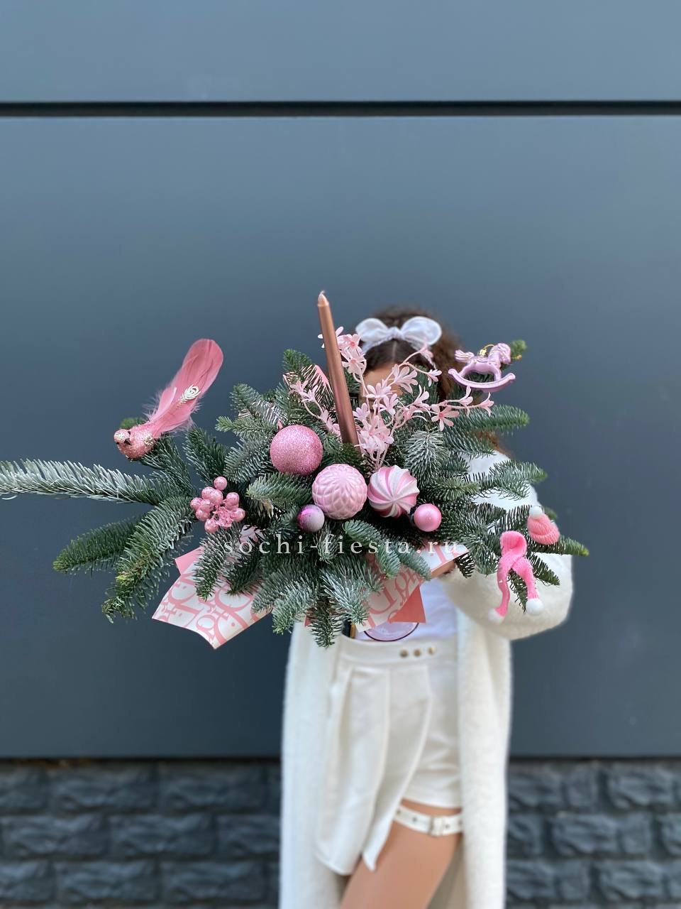 Состав: нобилис, бокал, оазис, свечи, новогодние игрушки, декор