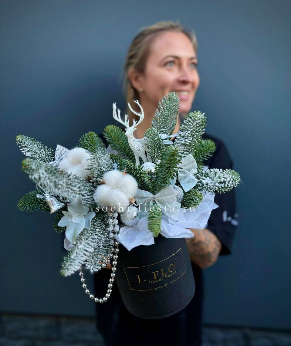 Состав: нобилис, цилиндр, оазис, новогодние игрушки, декор