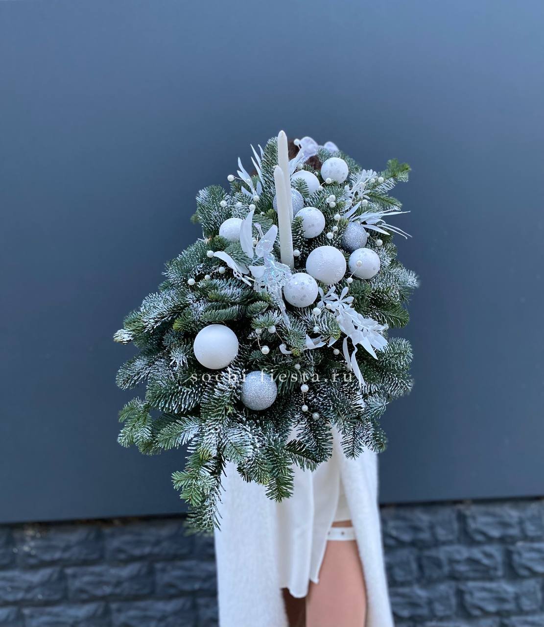 Состав: нобилис, балерина, оазис, свечи, новогодние игрушки, декор