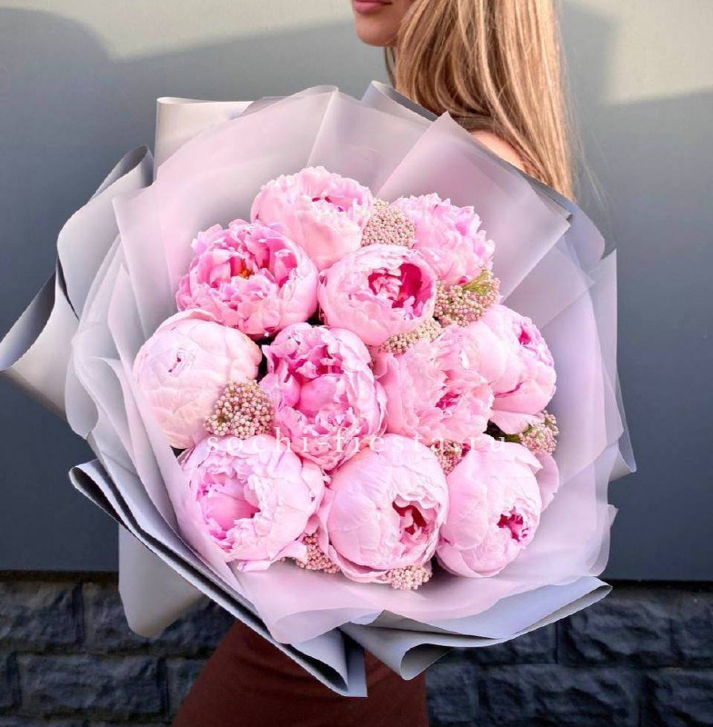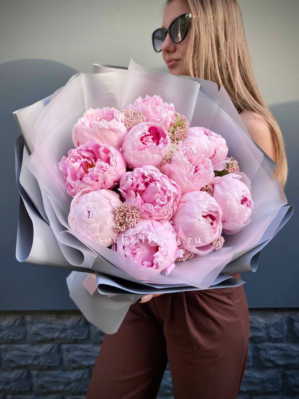 Состав: розовые пионы - 11 шт., озатамус, лента, дизайнерская упаковка