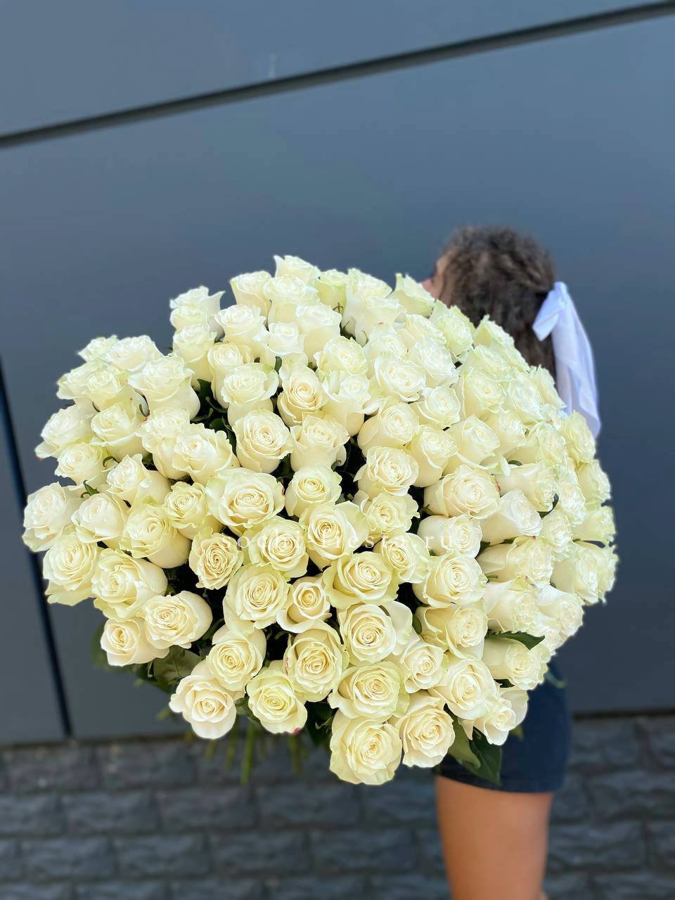 Состав: 101 белая роза 90см, лента