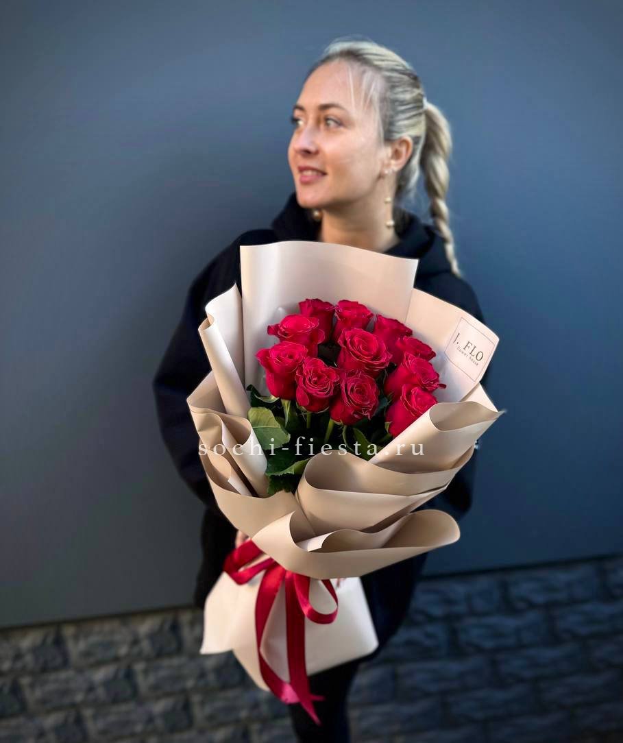 Состав: красные розы - количество на выбор, лента, комбинированная упаковка