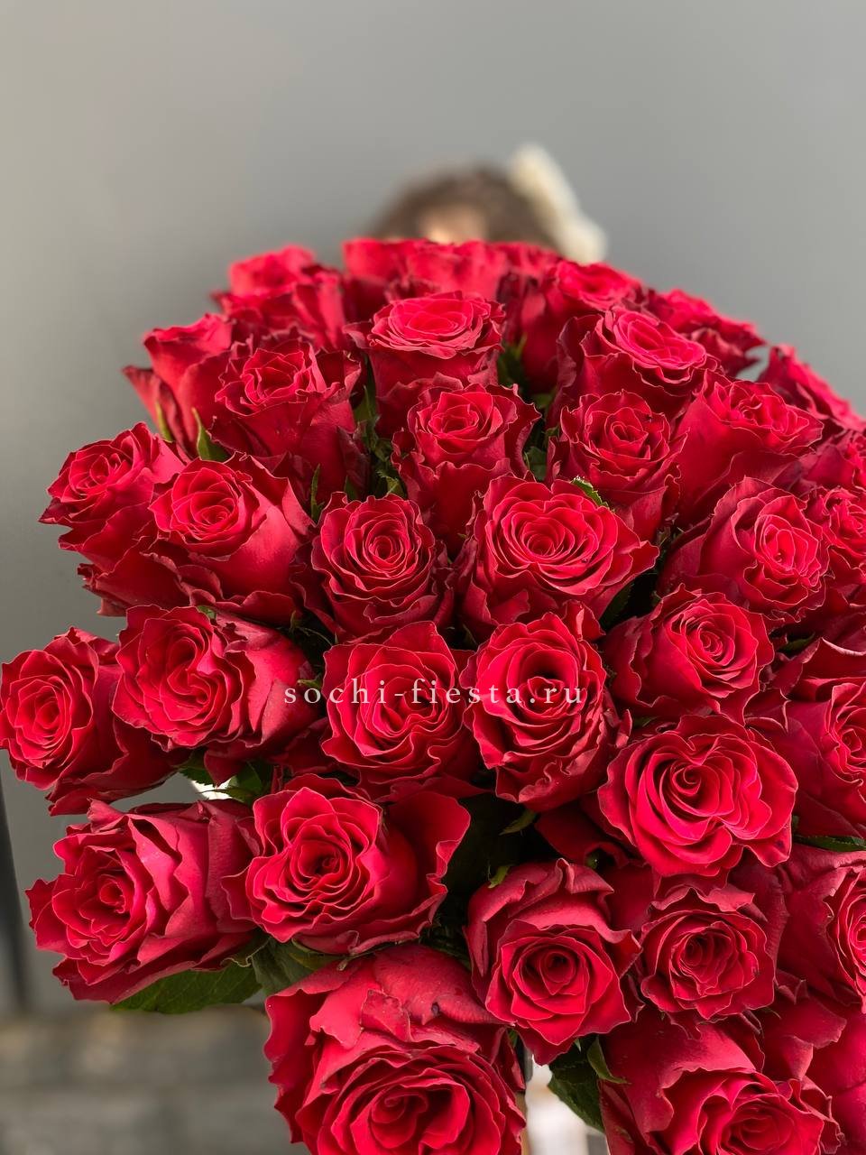 Состав: 51 красная роза, лента