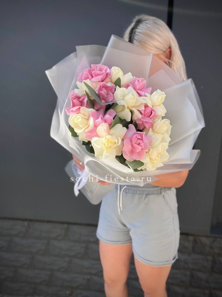 Для заказа товара "15 бело-розовых роз" с доставкой в Москве нажмите в корзину