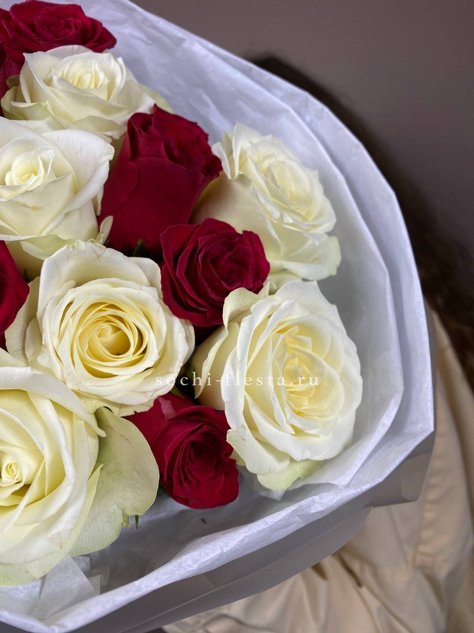 Букет из красных белых 15 роз