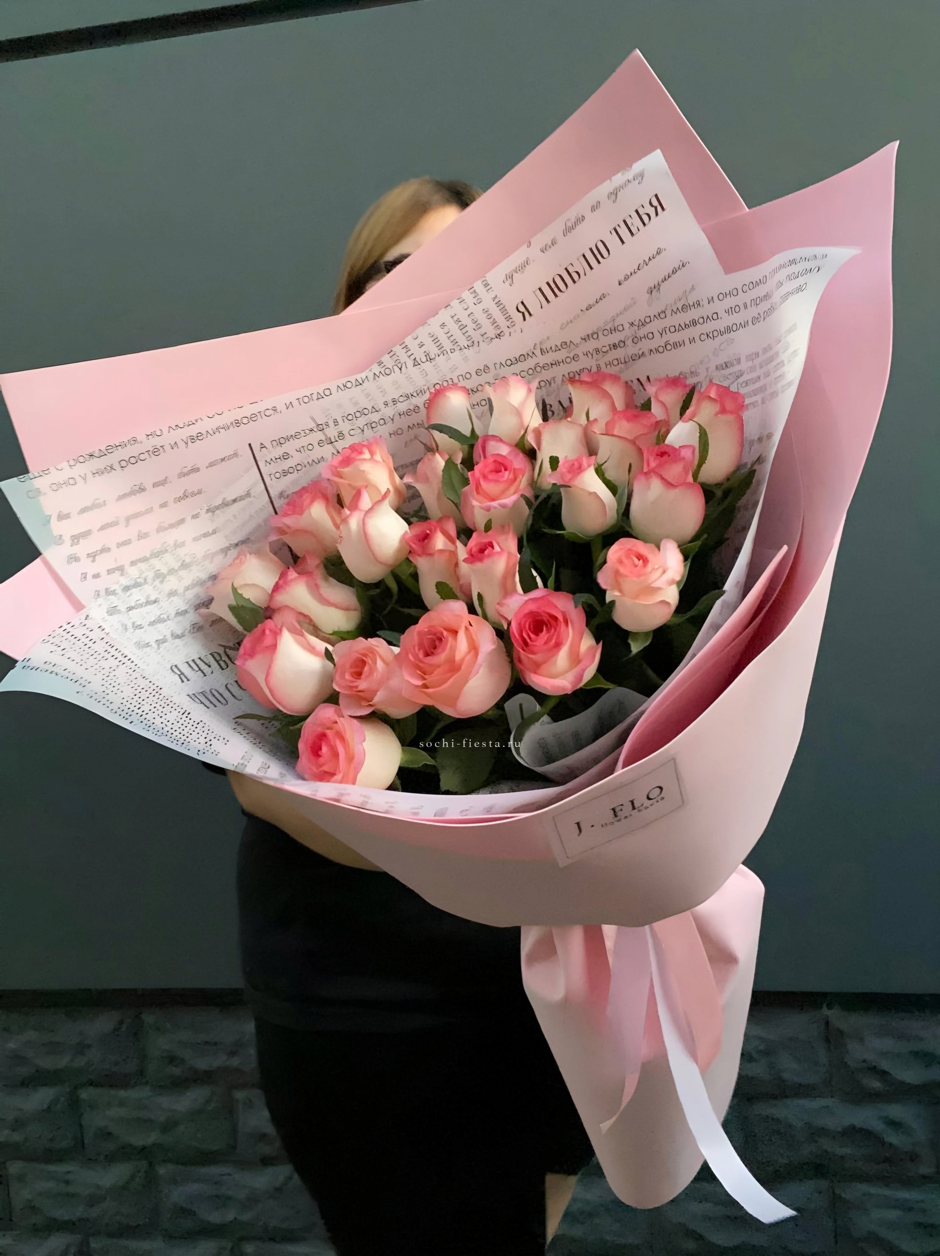 Нежное и в тоже время яркое сочетание персикового и розового цвета данной розы не оставит равнодушной ни одну девушку
