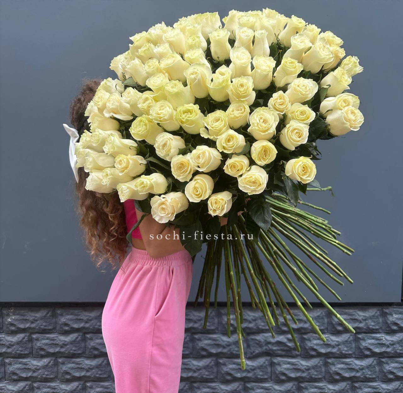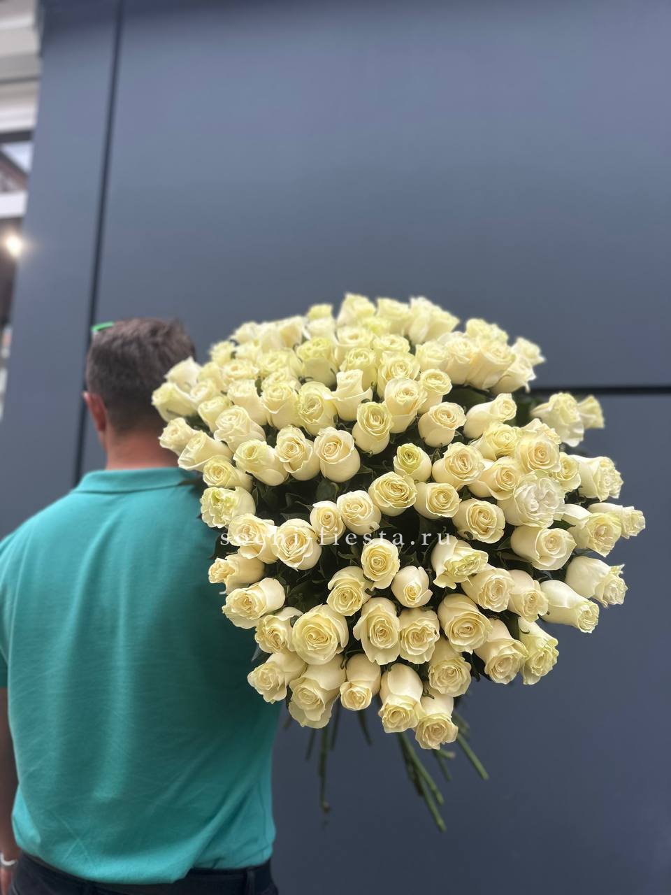 Для заказа товара "101 белая высокая импортная роза под ленту" с доставкой в Москве нажмите в корзину