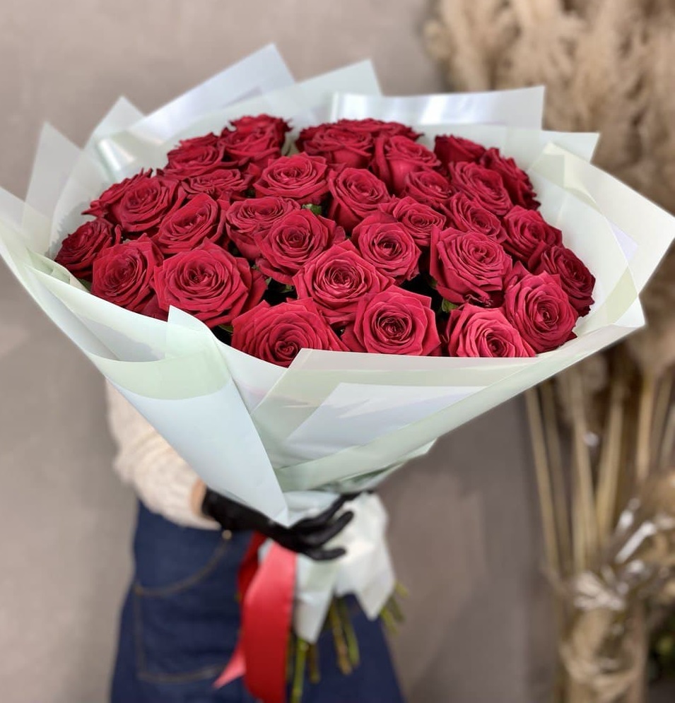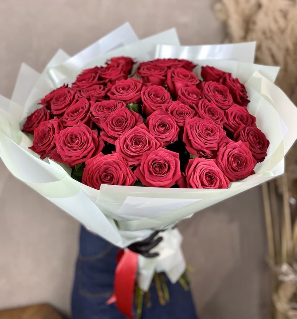 Для заказа товара "51 белоснежная высокая роза" с доставкой в Москве нажмите в корзину