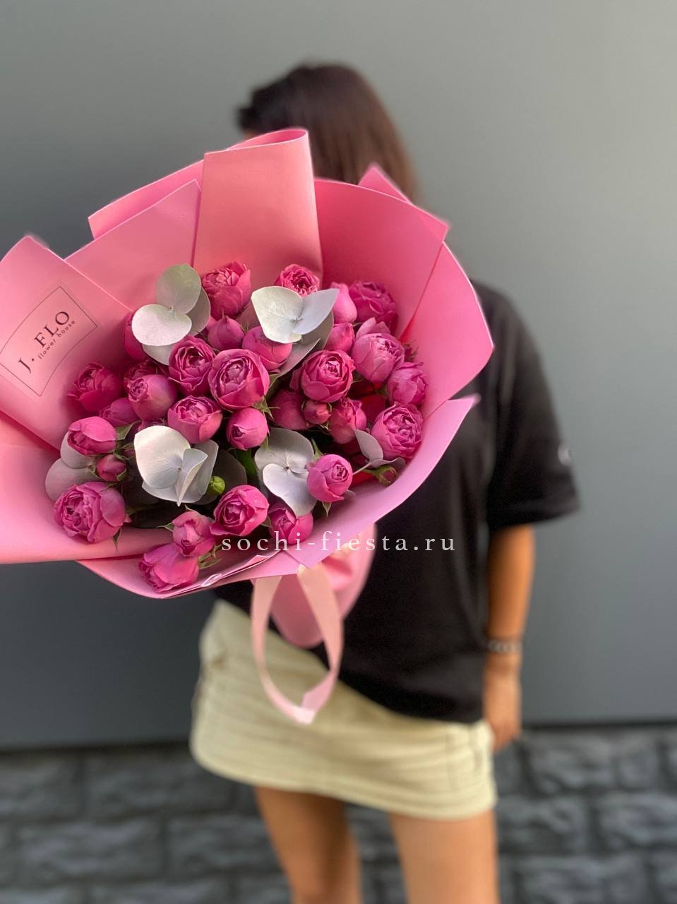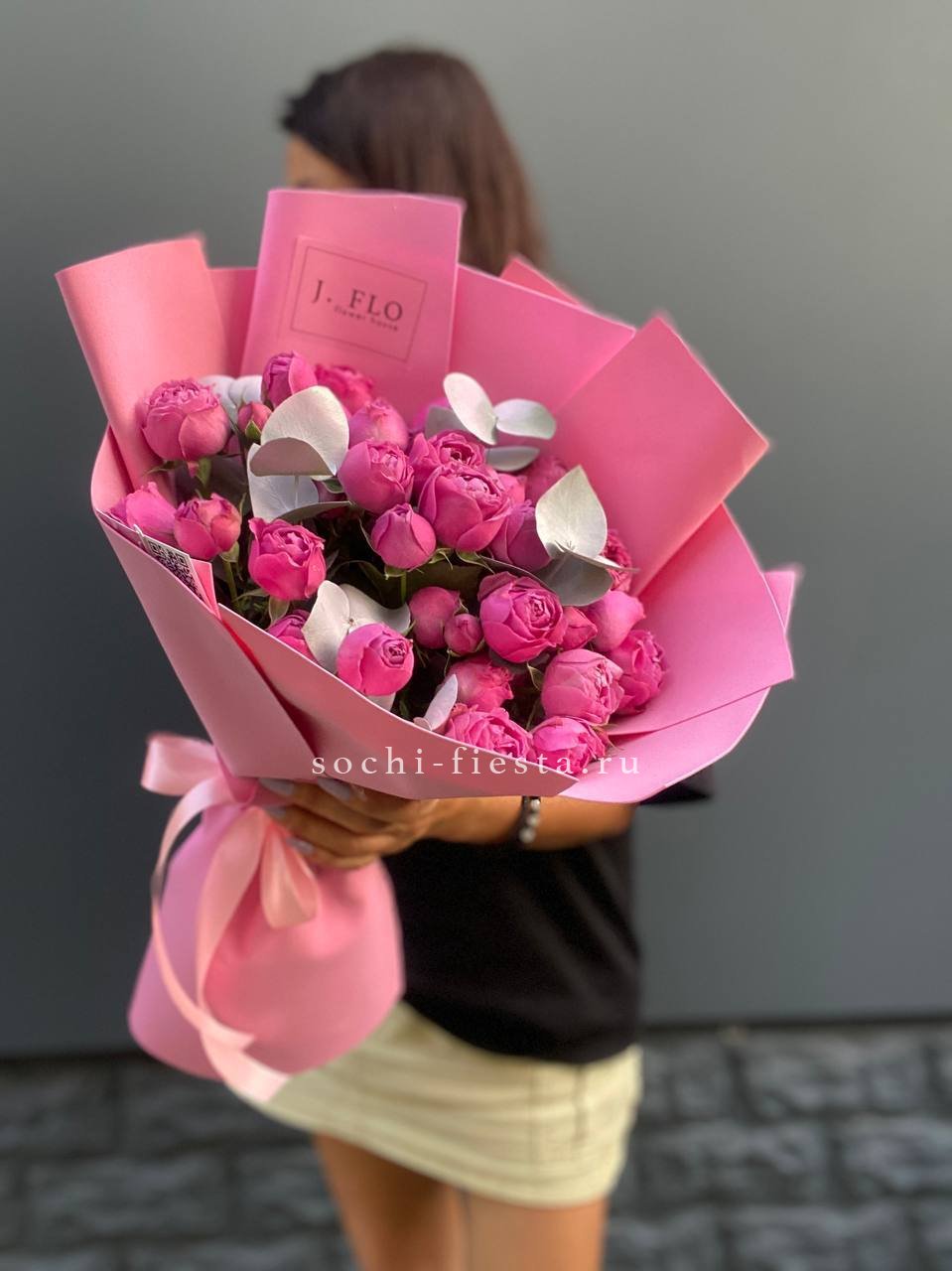 Состав букета на фотографии: роза мисти бабблс - 15 шт., лента, дизайнерская упаковка