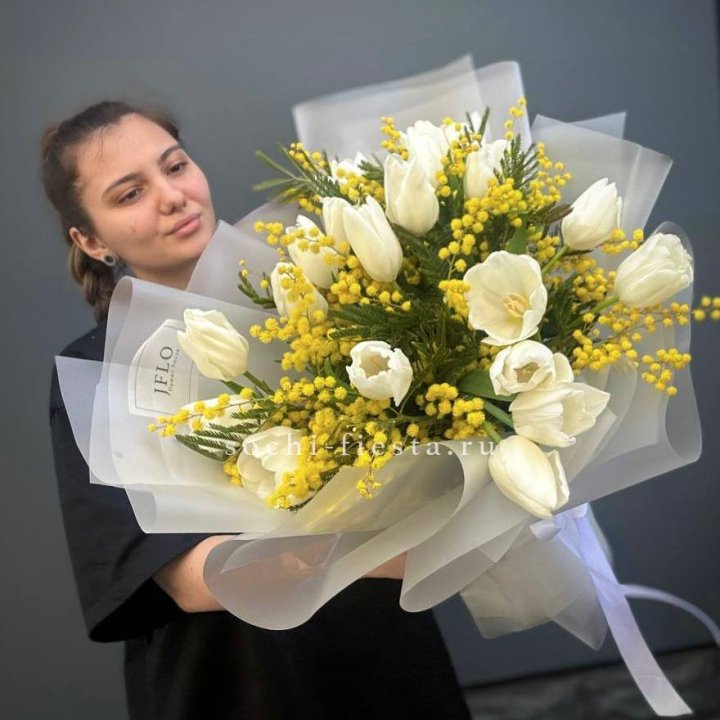 Букет тюльпанов и мимозы