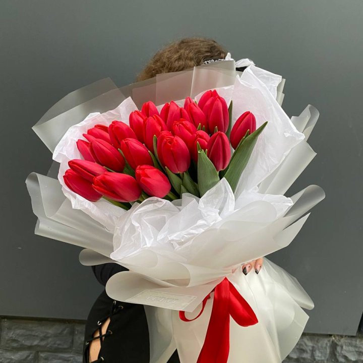 25 красных воздушных тюльпанов