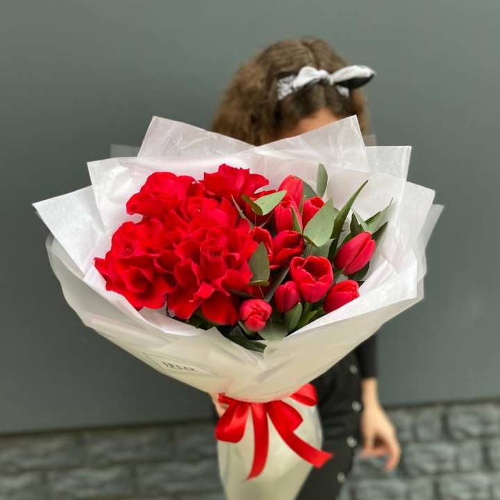 Дуо тюльпаны и розы