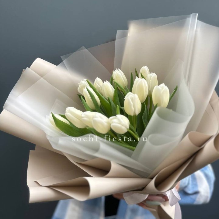19 белых воздушных тюльпанов
